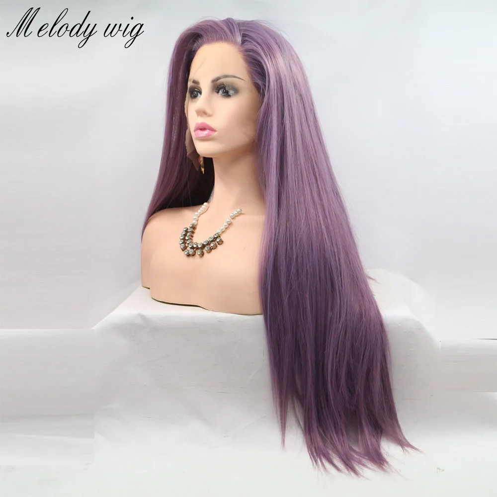 Парик Melody из длинных прямых волос, Фиолетовый парик с боковым разделением, термостойкие синтетические передние парики на сетке, натуральные мягкие волосы