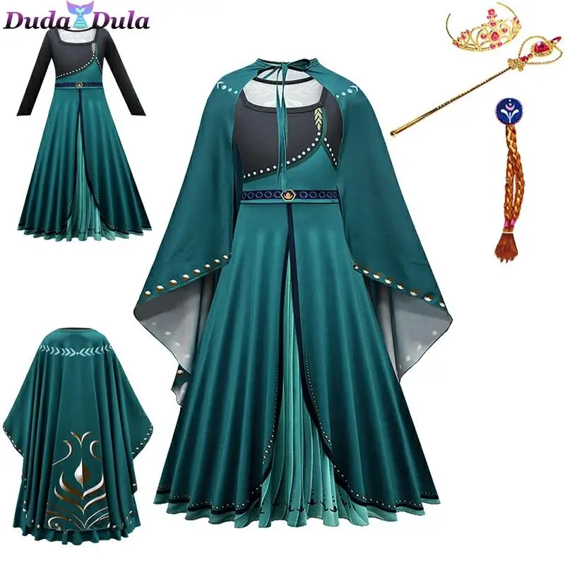 Темно-зеленое платье принцессы королевы Анны с накидкой; Комплект о...