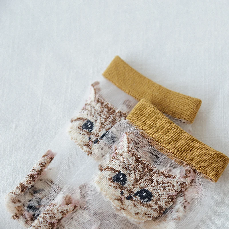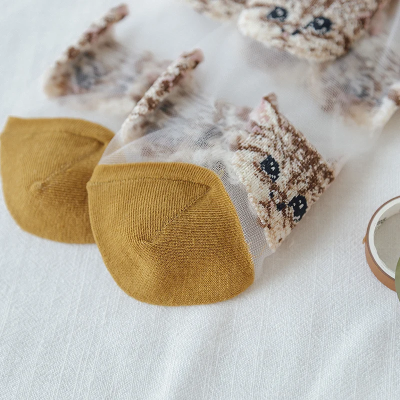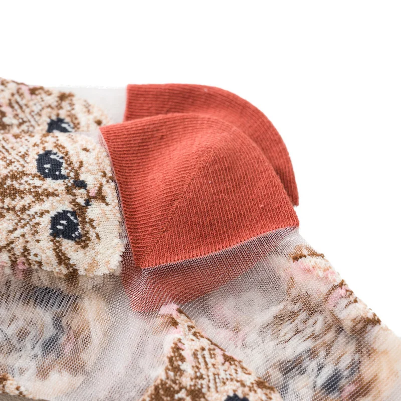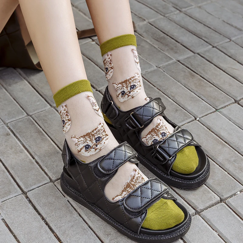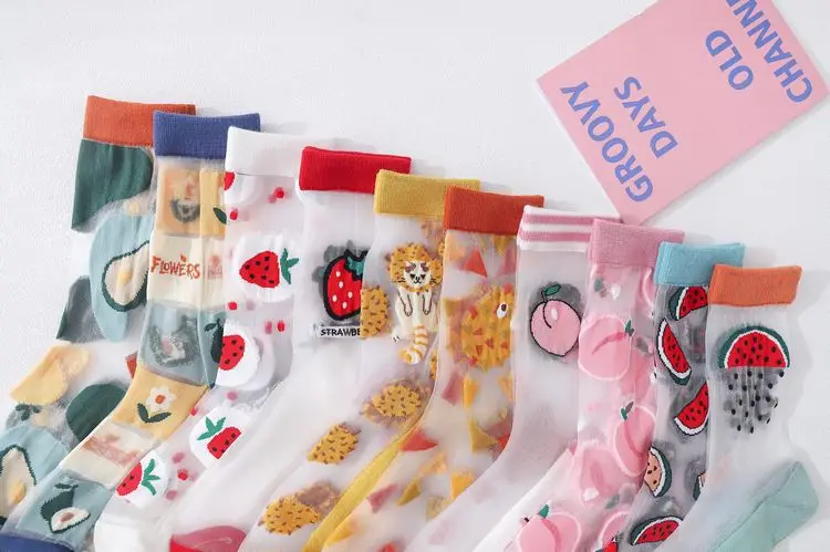 Женские прозрачные носки со смешным рисунком, милые тонкие шелковые...