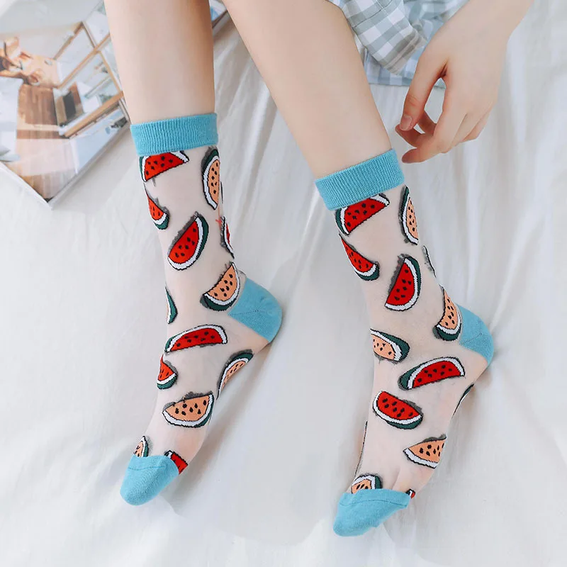 Новейшие шелковые носки в Корейском стиле Харадзюку с кристаллами, забавные авокадо, арбуз, счастливые женские носки с ананасами и фруктами, повседневные носки