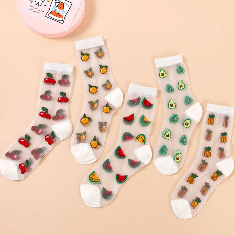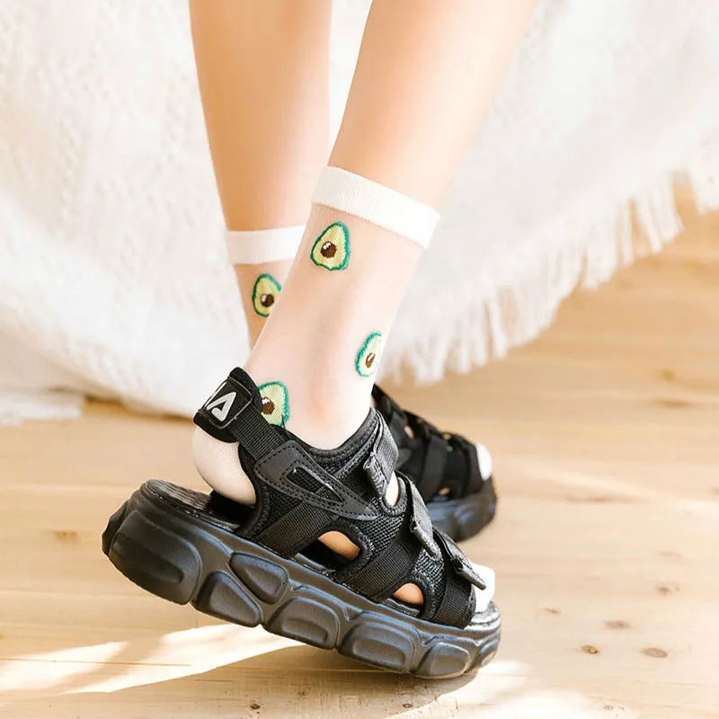 SOPLCAALCK тонкие прозрачные забавные Женские носочки авокадо с фру...