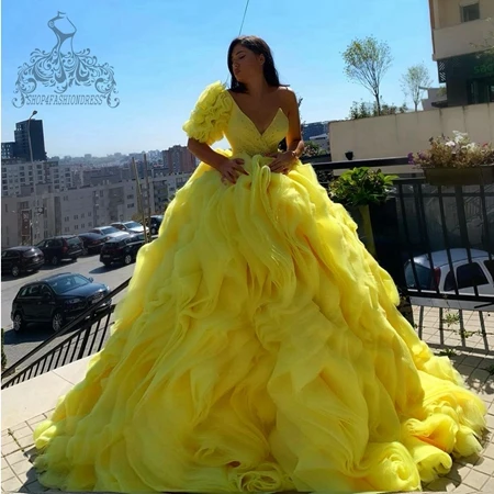 Вечерние платья для дня рождения, желтые пышные бальные платья с от...