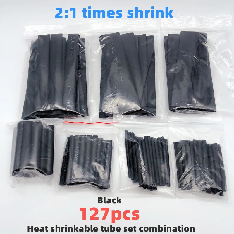 Черные термоусадочные трубки для изоляции кабеля, 127 шт., водонепроницаемые электронные трубки, набор сделай сам, полиолефиновые термоусадочные трубки с покрытием
