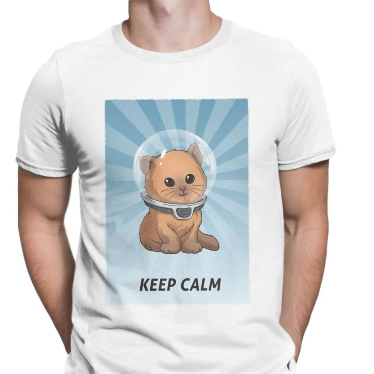 Мужские Винтажные футболки с надписью Keep Calm Kitty
