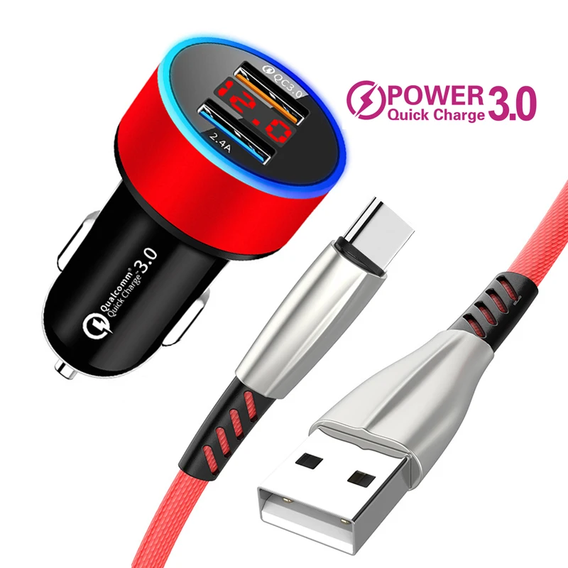 Автомобильное зарядное устройство с двойным USB QC 3,0, светодиодны...