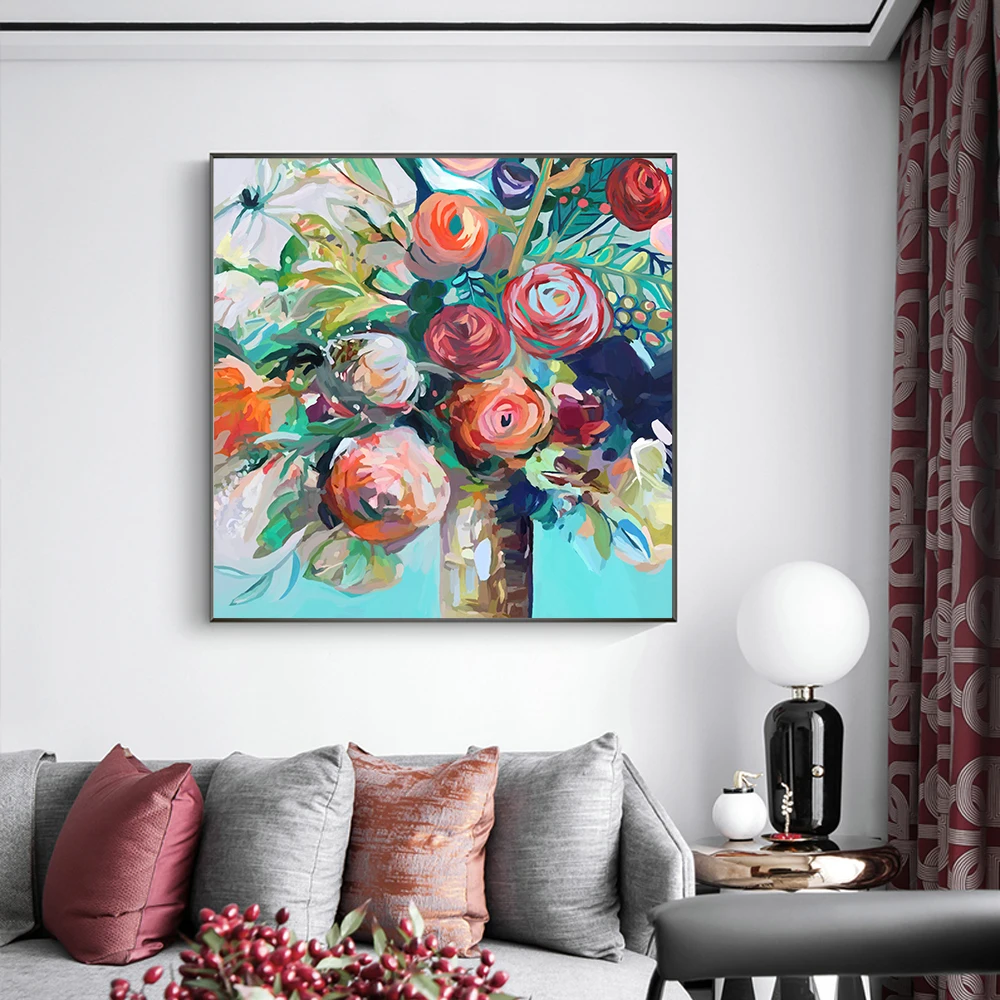 Картина на холсте, с абстрактными цветами, постеры с масляной живоп...