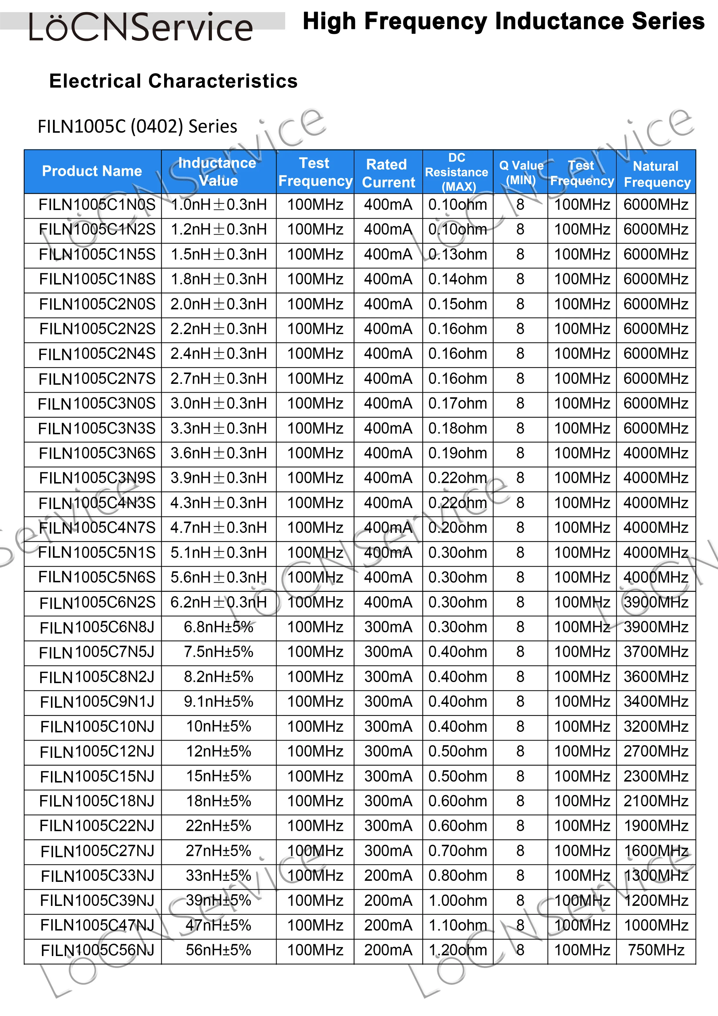 0.3%Высокочастотный 2.7NH 3.3NH 3.9NH 4.7NH 5.6NH нажмите здесь>