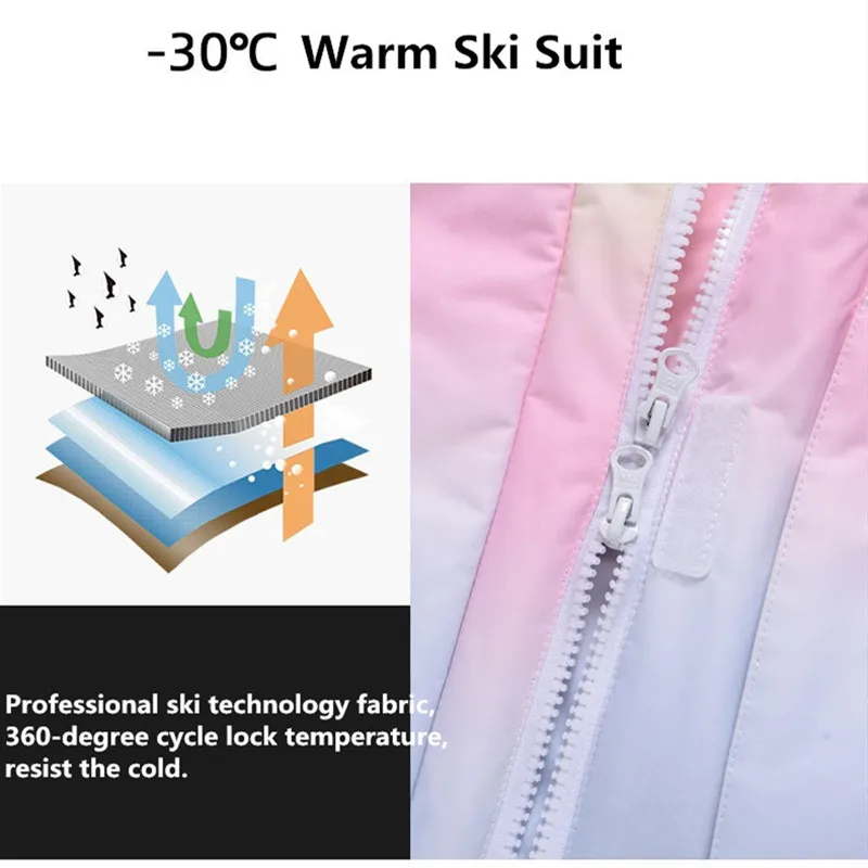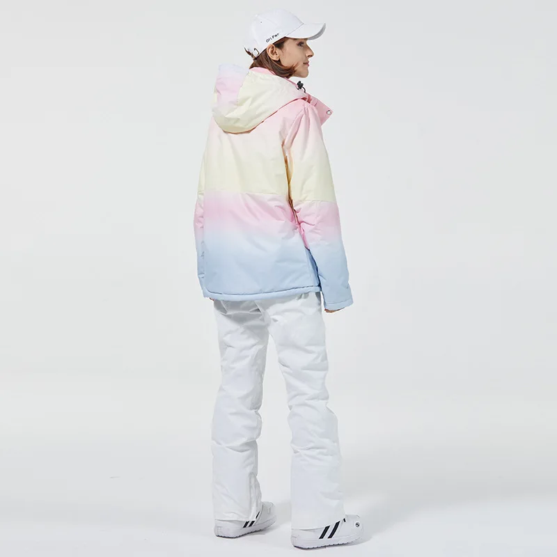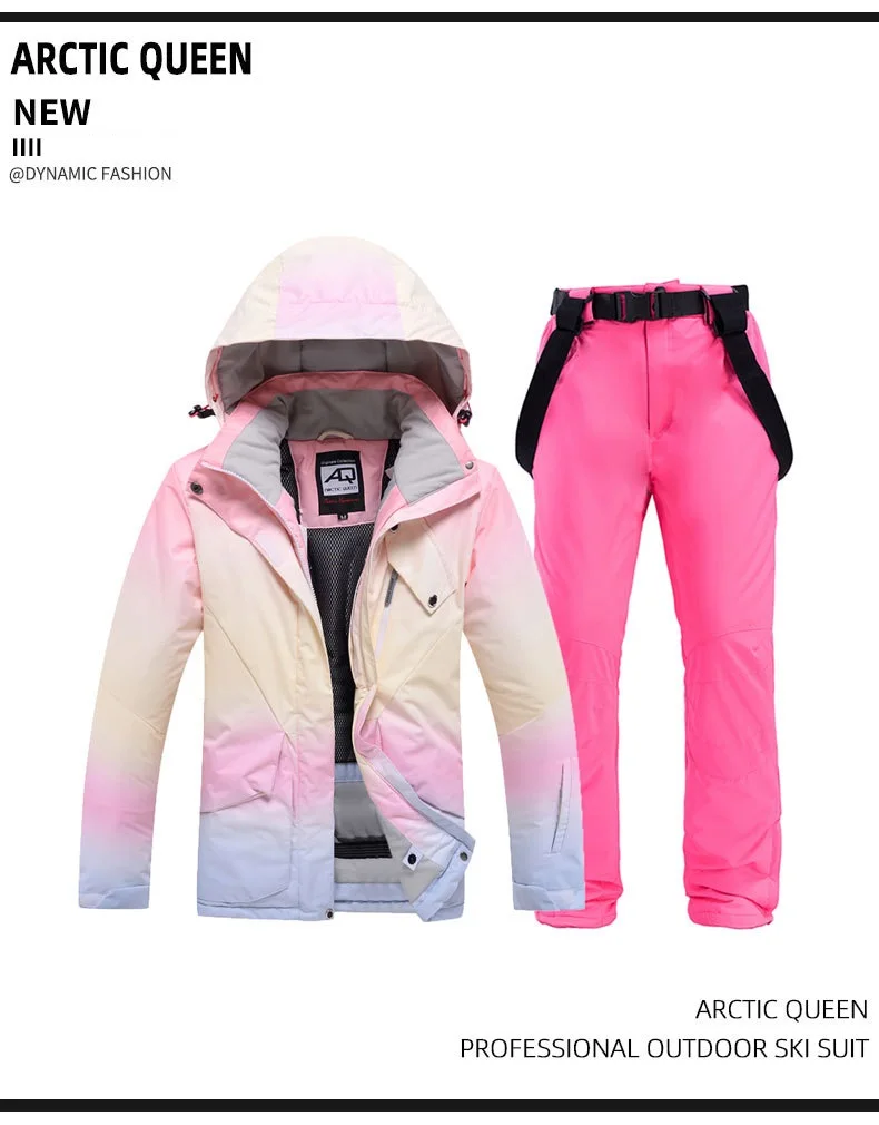 Новинка 2022, Модный женский лыжный костюм с подбором цветов, ветрозащитная водонепроницаемая куртка для сноуборда и брюки, женский костюм, костюм для снежной погоды