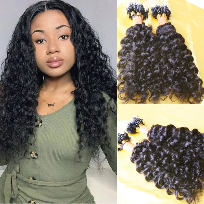 Наращивание человеческих волос I Tip из Малайзии, кудрявые плоские ...