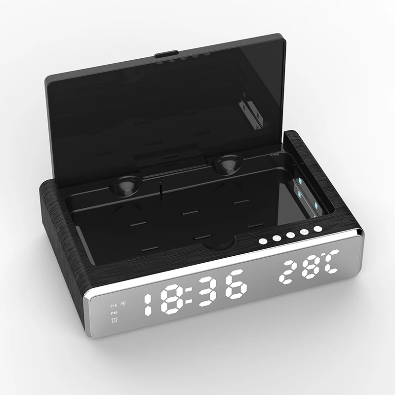 Беспроводное зарядное устройство для телефона, светодиодный зеркальный будильник с Bluetooth-совместимым динамиком, быстрое зарядное устройство для Iphone, Samsung