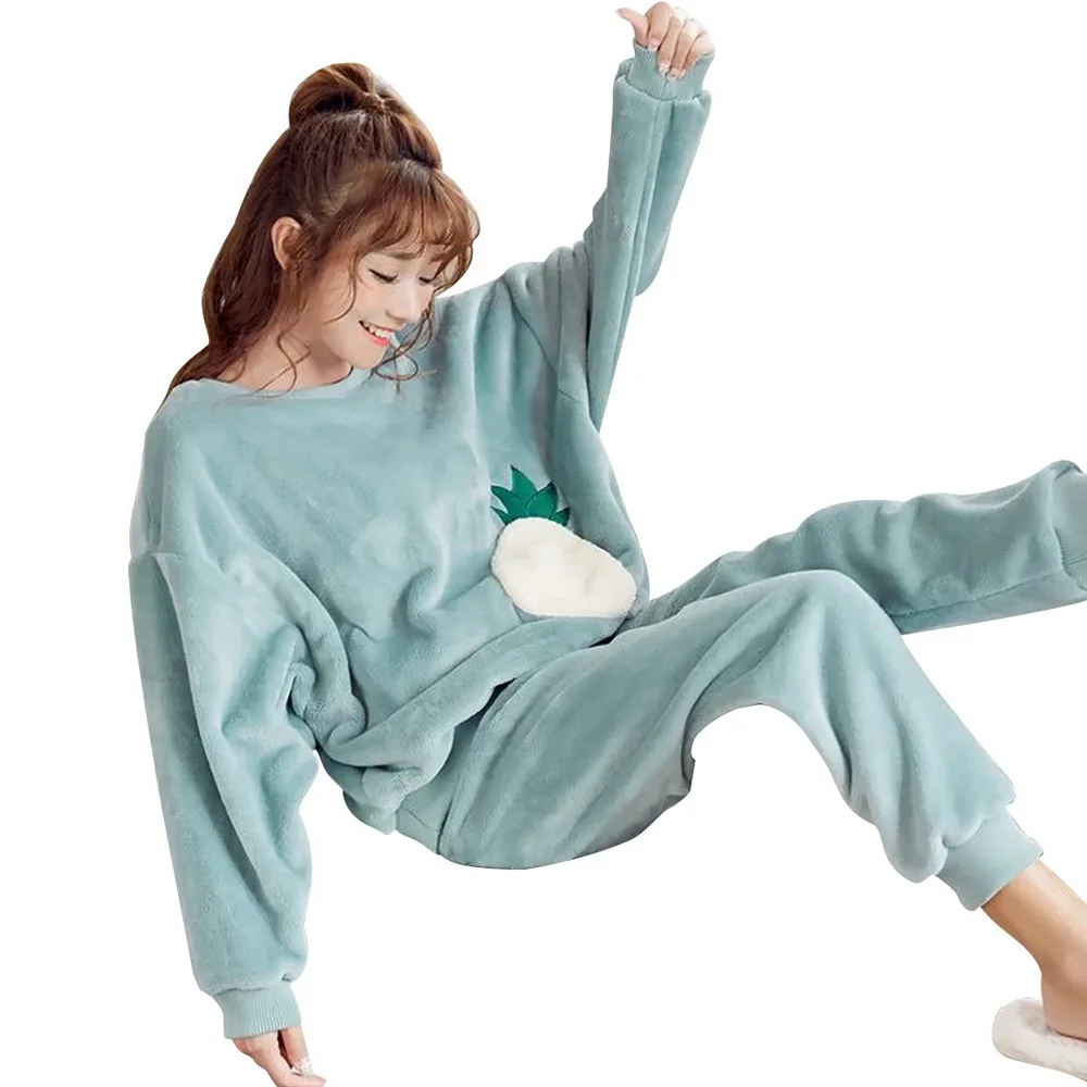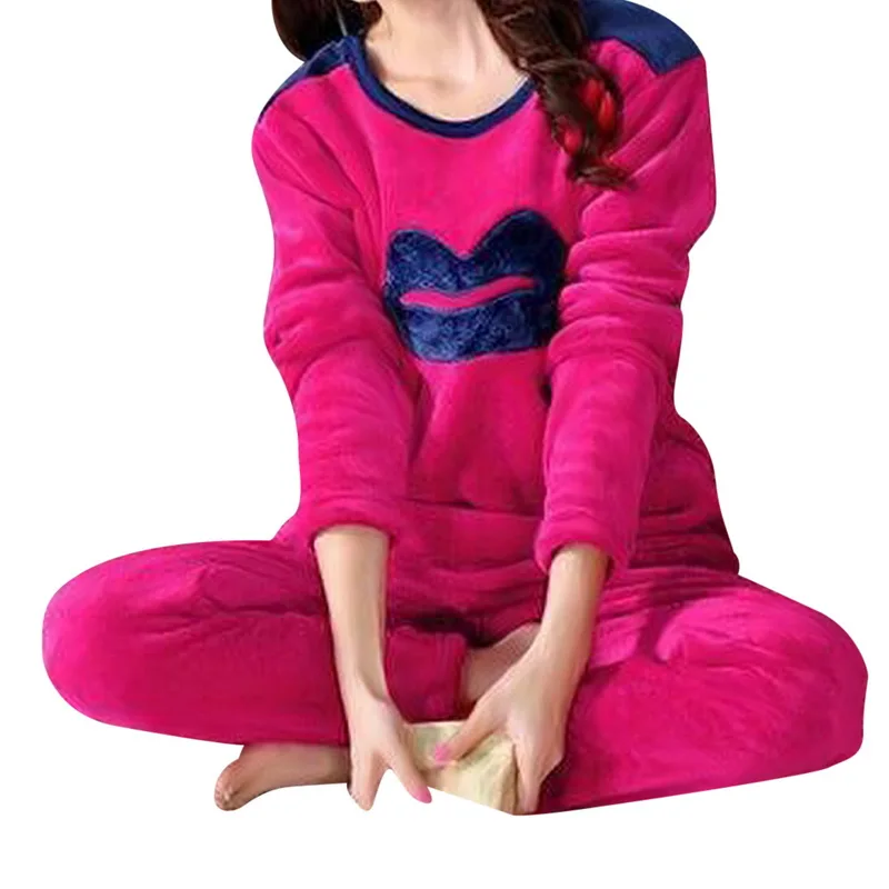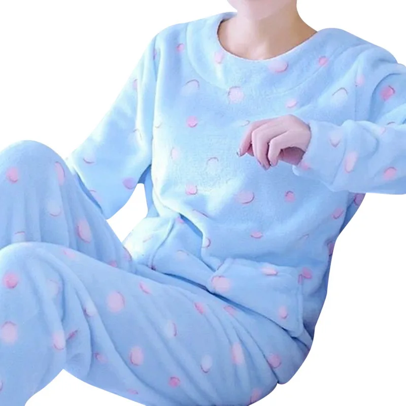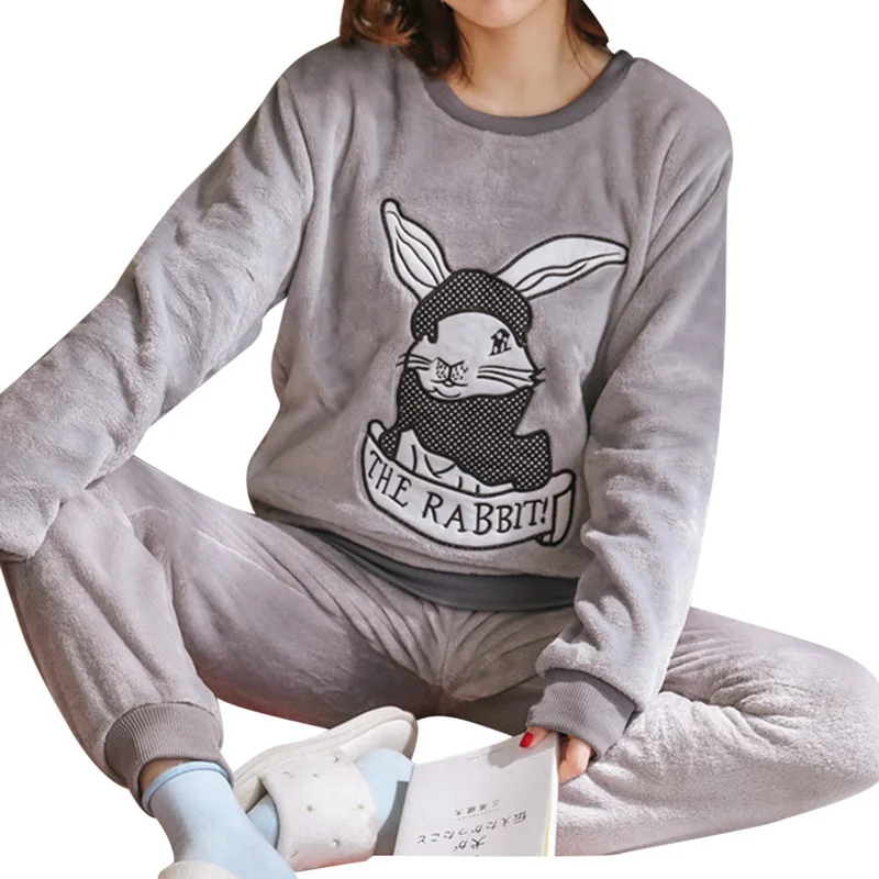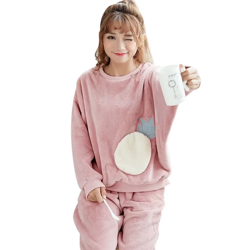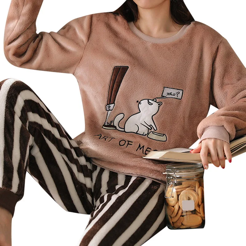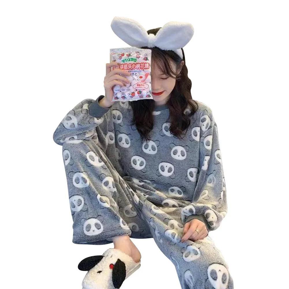 Модные бархатные фланелевые пижамные комплекты, Женский пуловер с длинным рукавом и принтом, комплекты одежды для сна, пижама, женская теплая Домашняя одежда, одежда для отдыха