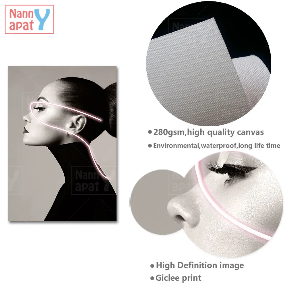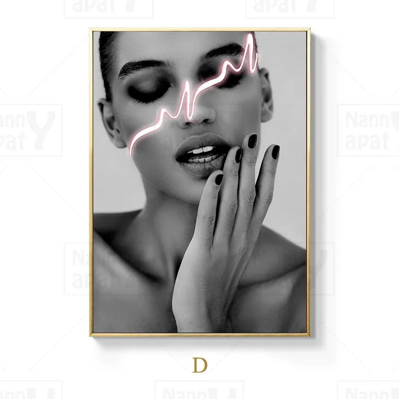 Модный неоновый плакат черно-белого цвета для девочек, красивая женская Настенная картина на холсте, креативная печатная картина, Современное украшение для дома