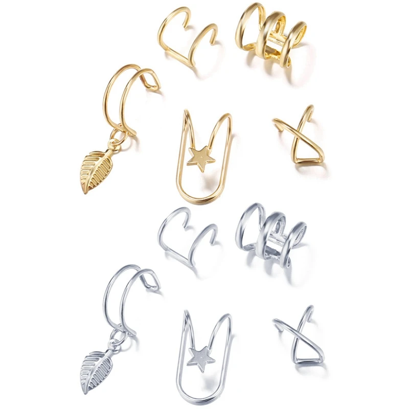 5 шт.компл. Кафф серьги-клипсы поддельные серьги, Надеваемые На ушной хрящ для Для женщин мужчин клип серьги клипсы пирсинга