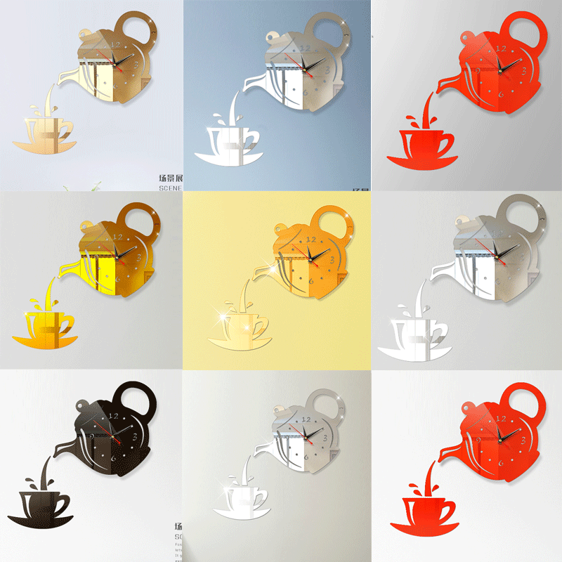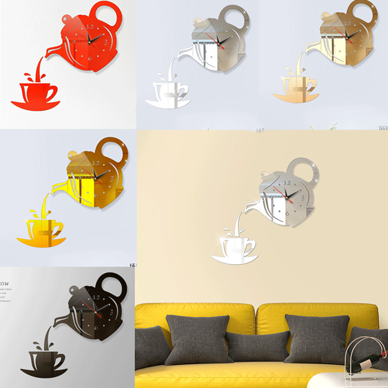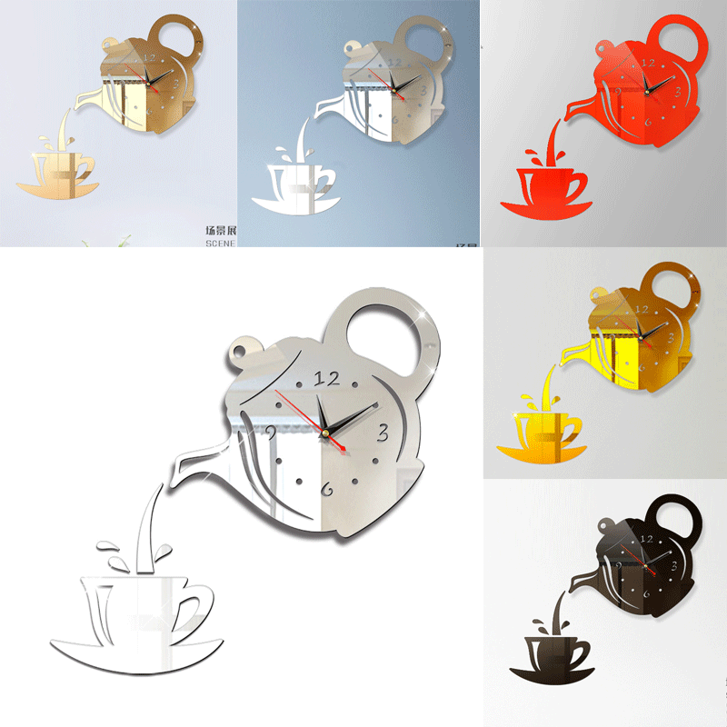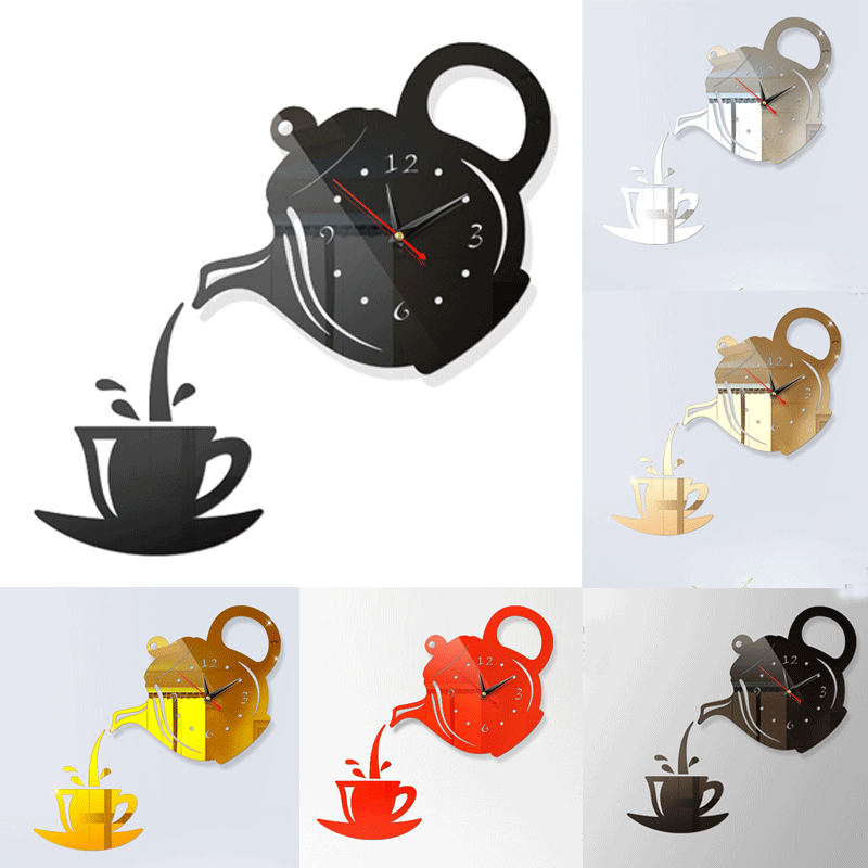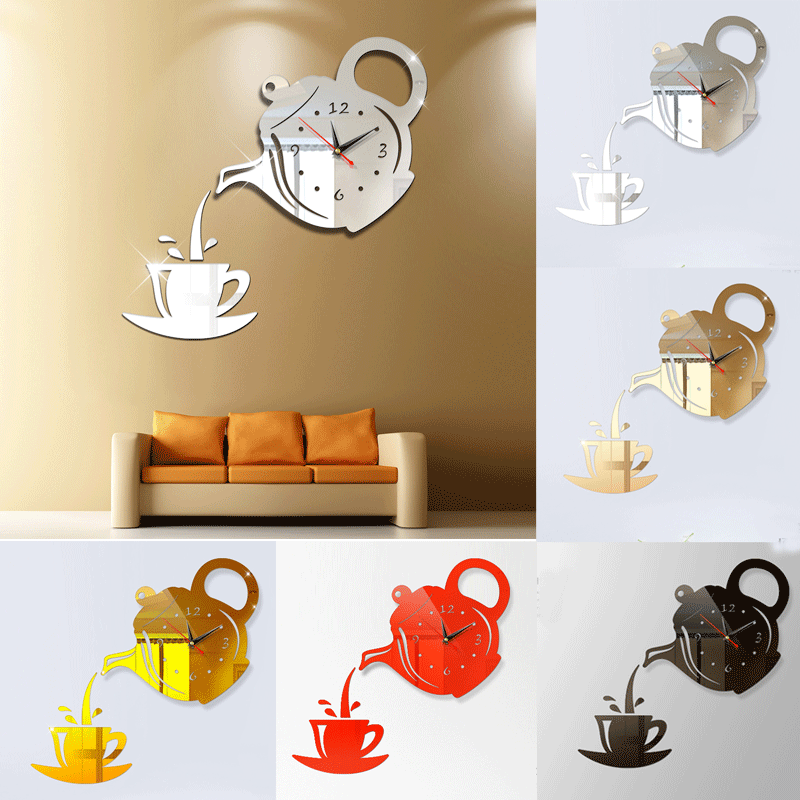 Акриловые кофейные чашки, кухонные настенные зеркальные часы, современный дизайн, украшение для дома, Декор, Настенная Наклейка для столовой, домашний декор