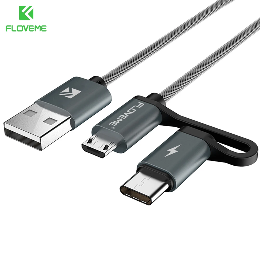Кабель FLOVEME 2 в 1, Micro USB Type-C, для быстрой зарядки, QC 3,0...