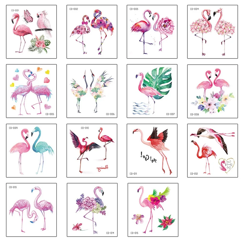 5 шт.компл. наклейки-тату акварельные Фламинго Цветы птицы водостойкие временные одноразовые боди-арт макияж Временная татуировка