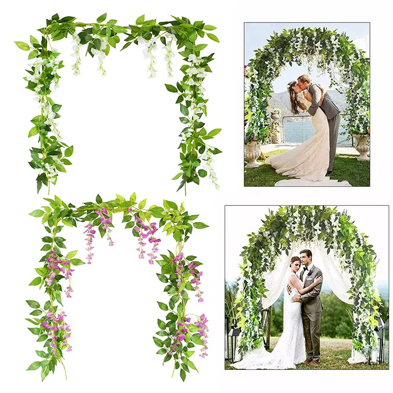 Листья эвкалипта, растения, гирлянда, искусственный цветок глицинии...
