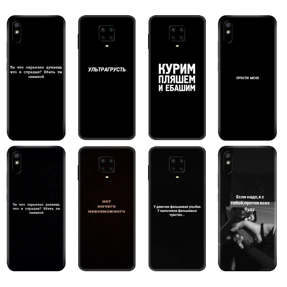Черный чехол из ТПУ для Xiaomi Redmi 7A, 8, 8A, 9, 9A, 9C, чехол для Redmi Note 8T, 8 Pro, T, Note 9, 9S, 9 Pro, чехол с надписью на русском языке