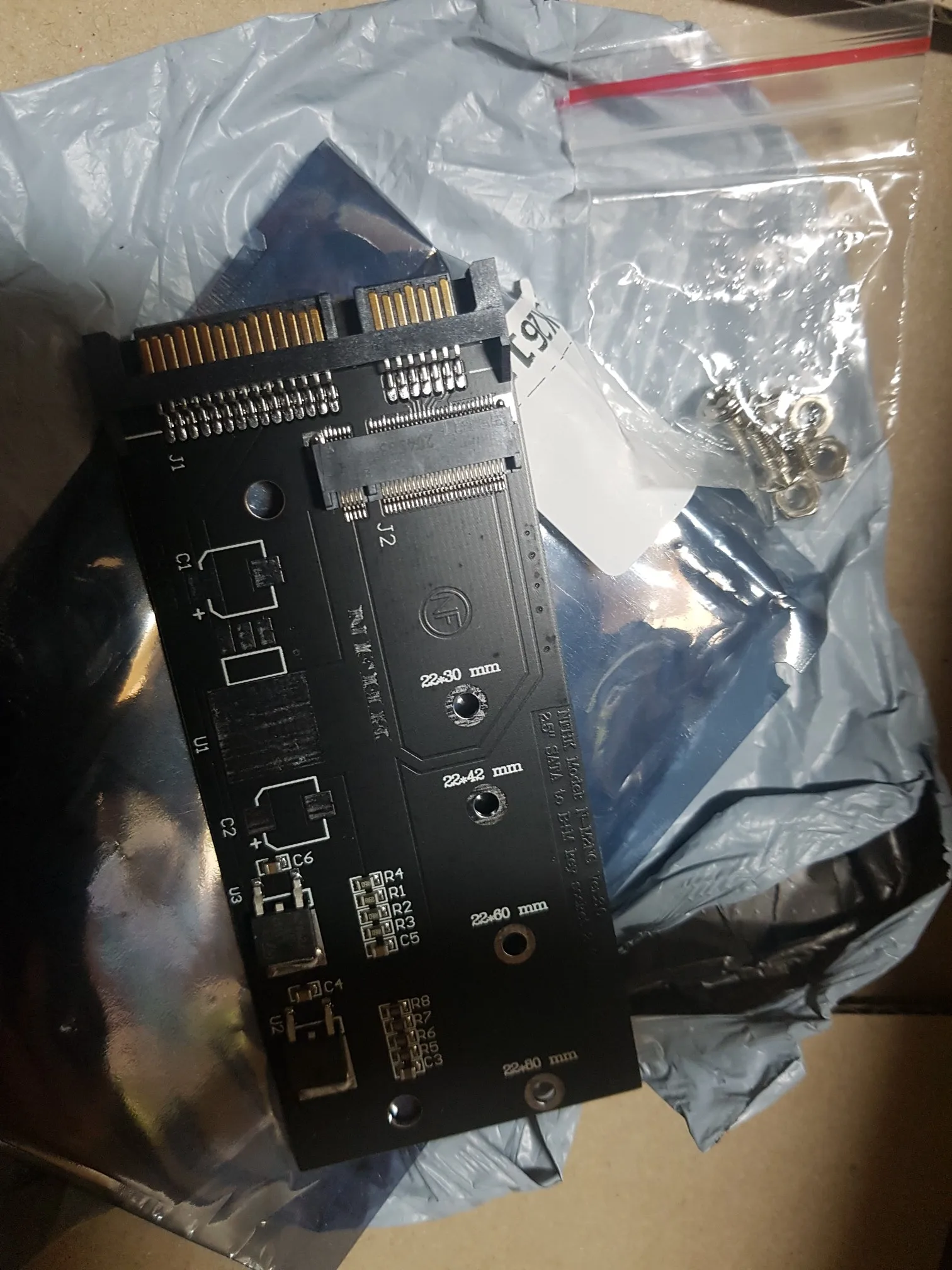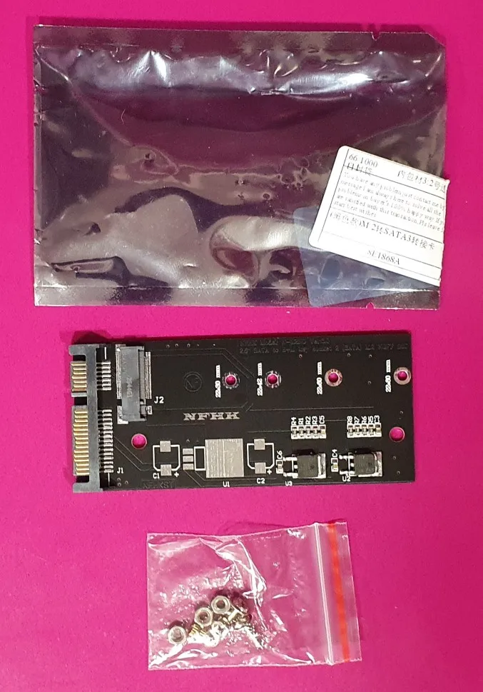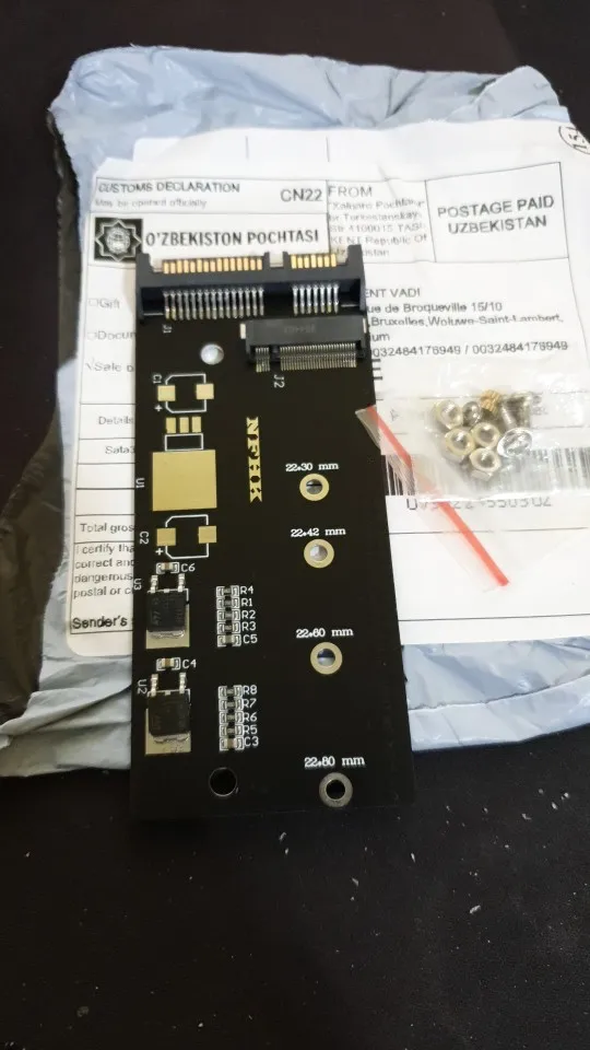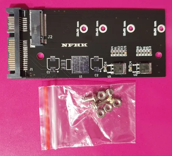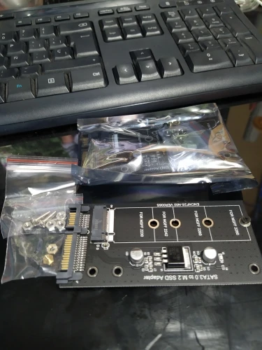 Предыстория - лопухнулся с М2, заказал NGFF, а на хуананжи не видится, вот пришлось выкручиваться, скорость конечно упадет, но... Сам переходник в принципе неплох, только непродумано крепление - болтик для фиксации опоры с длинной резьбой и когда закручиваешь их с двух сторон они либо не фиксируют опору, либо не прижимают модуль. Пришлось искать коротенькие.