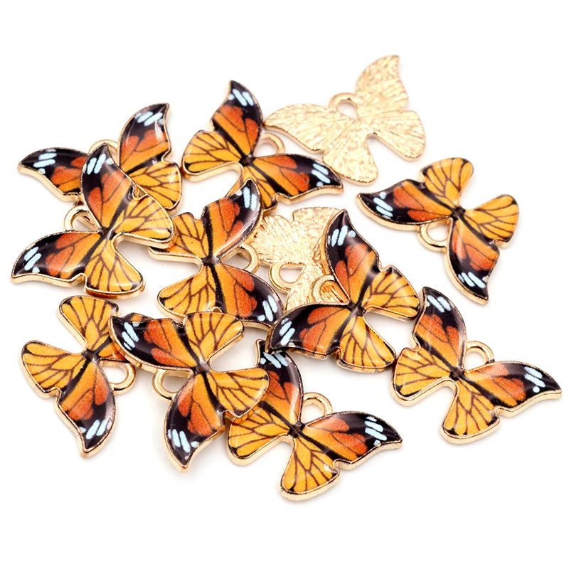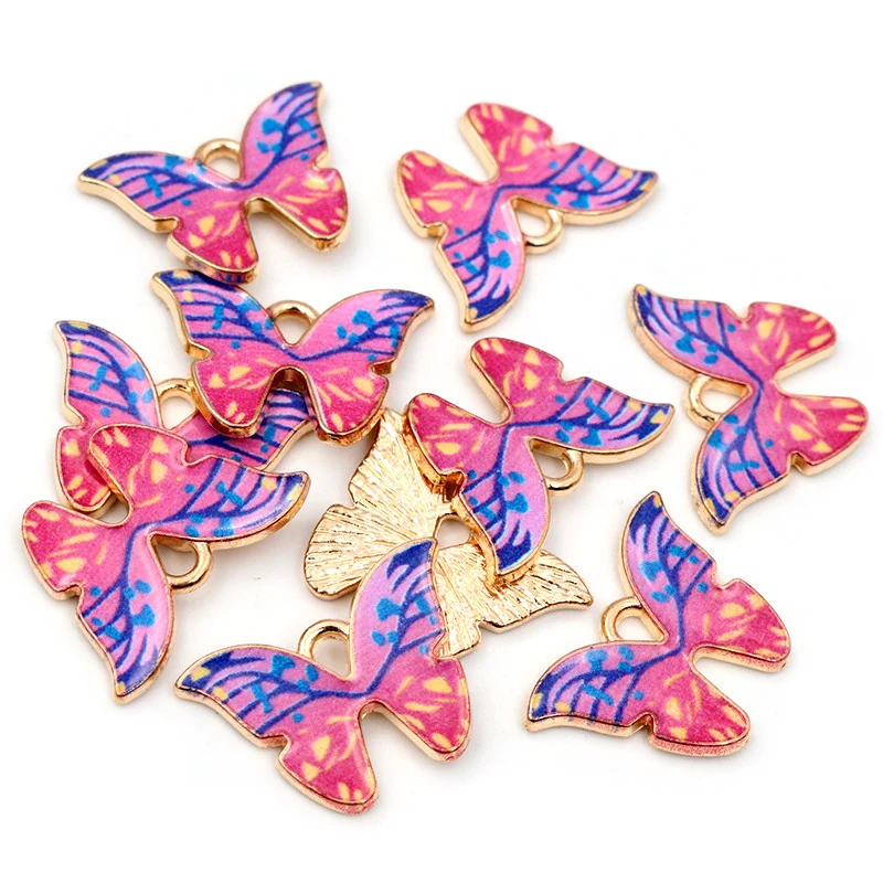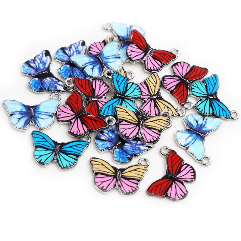 10 шт. Лот 21x15 мм красочные бабочки подвески кулон эмаль металлические маленькие подвески ожерелье браслет DIY ювелирных изделий аксессуары