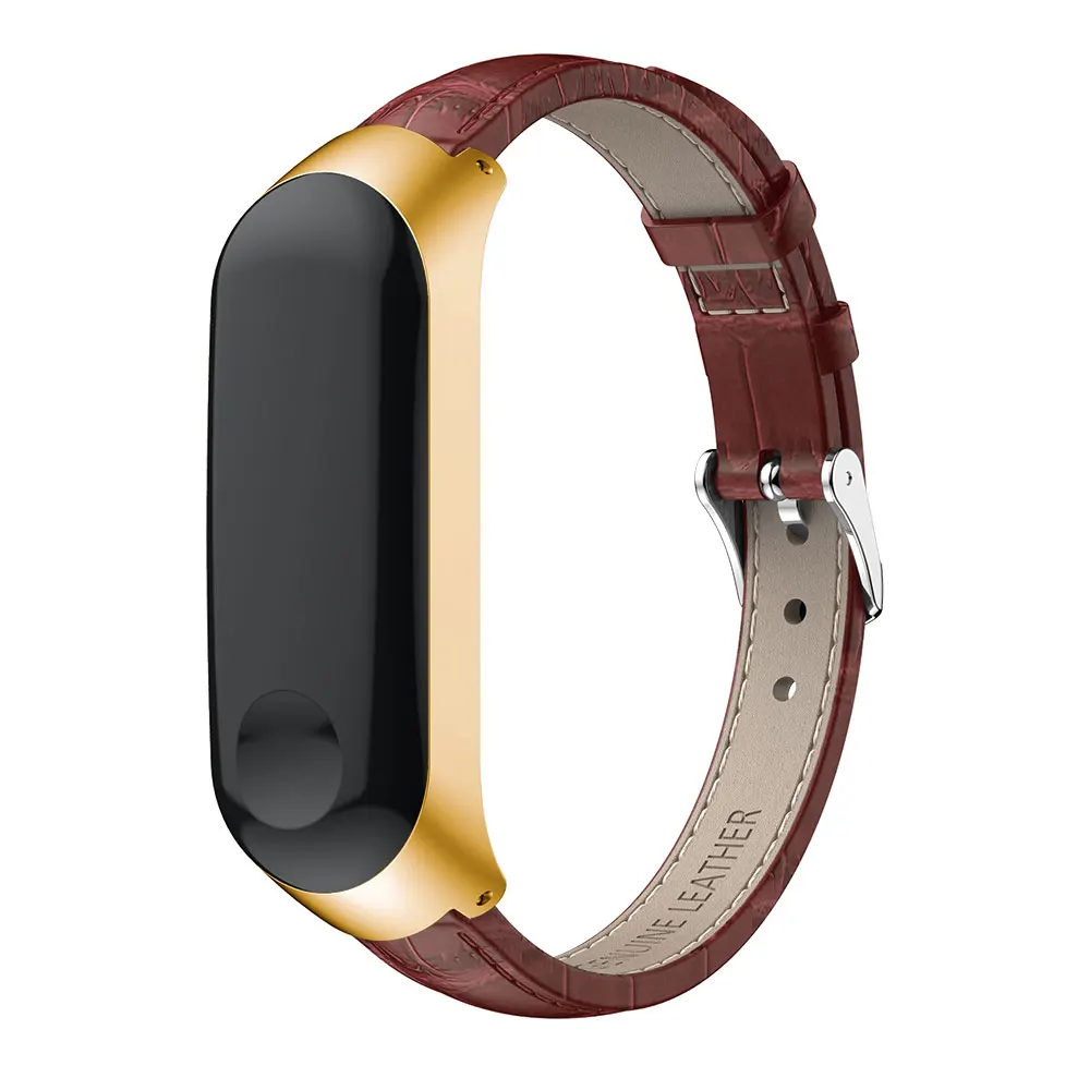 Ремешок для умных часов Xiaomi band 3, кожаный, металлический корпус