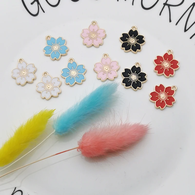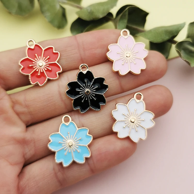10 штукупаковка вишня в цвету Эмаль Подвески Металлические пяти леп...
