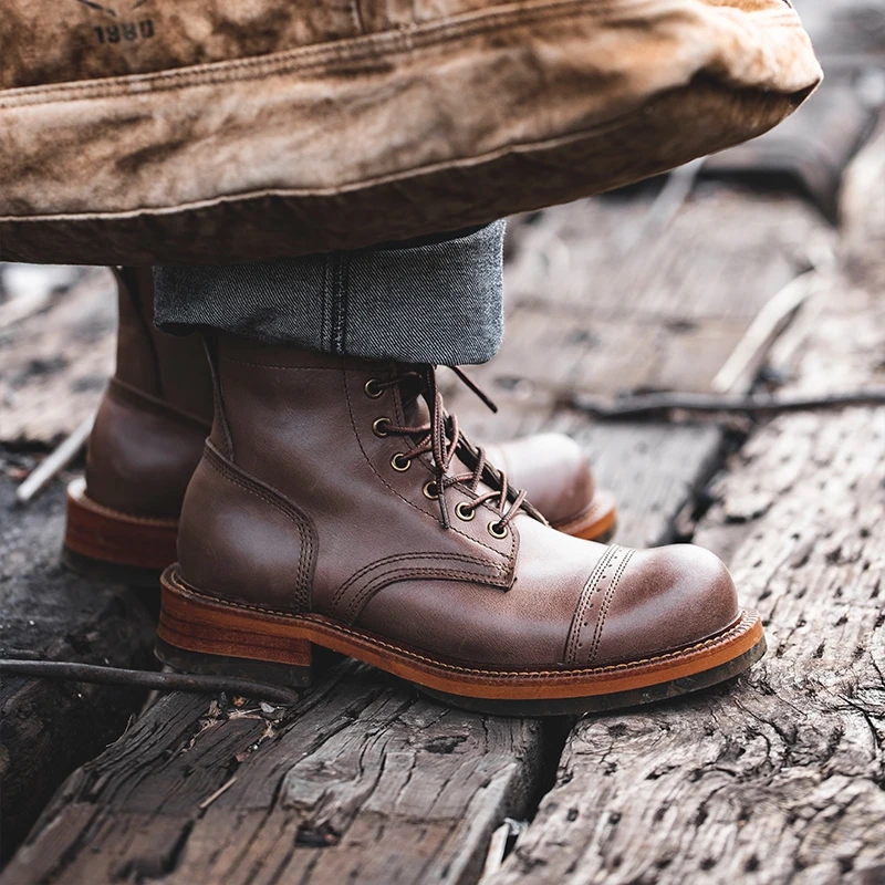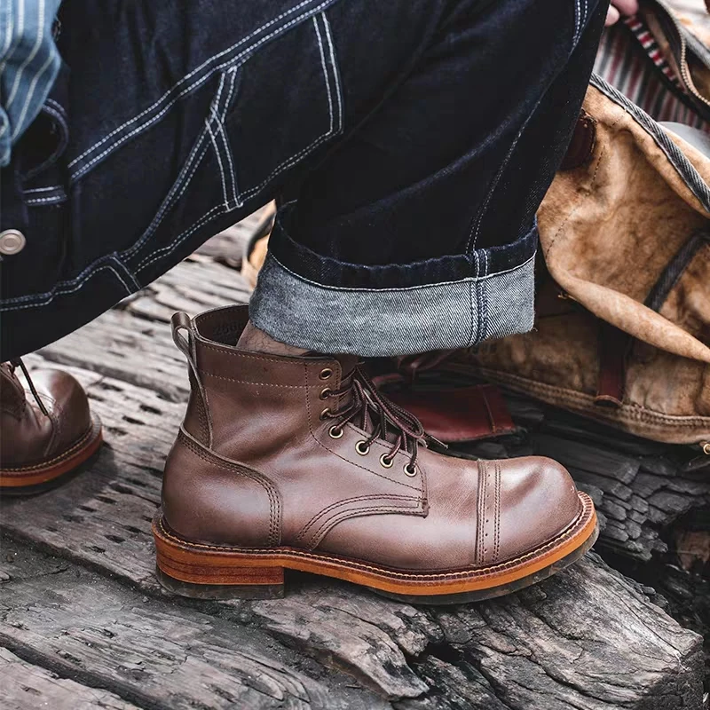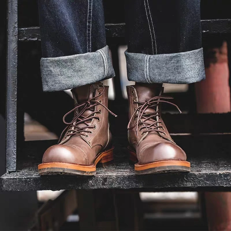 Yomior Одежда высшего качества в винтажном стиле; Повседневная мужская обувь; Ручная работа; Рабочая обувь в британском стиле круглый носок; Сапоги пустыни работы мотоботы