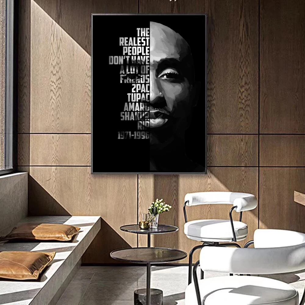 Черно-белый Тупак Шакур знаменитый хип-хоп рэп музыка ПЕВЕЦ звезды Современная Настенная картина Картина маслом домашний декор
