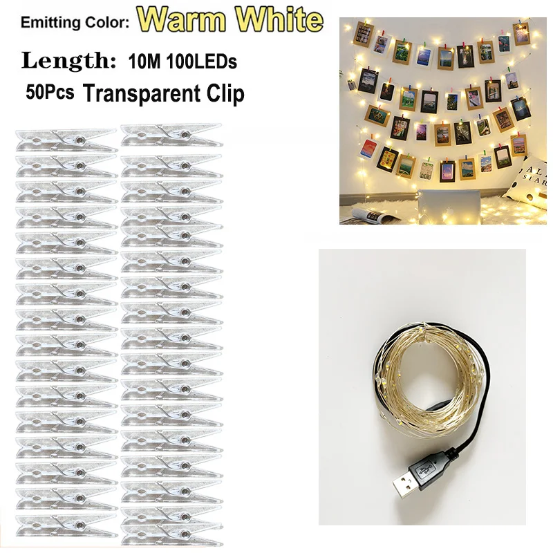 Светодиодная гирлянда с зажимами для фото, 5 м, 10 м, 50 прозрачных...