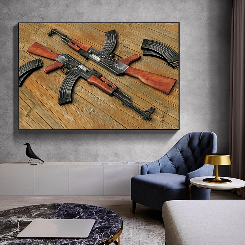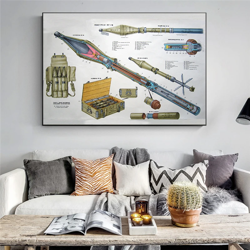 AK47 РПГ пистолет российское оружие диаграмма Печать на холсте Совр...