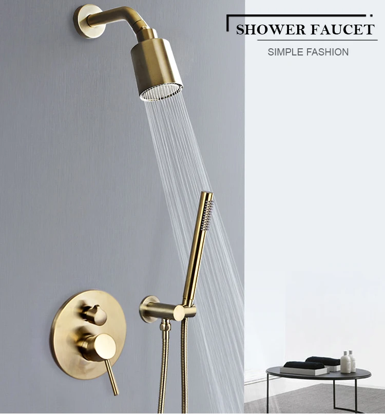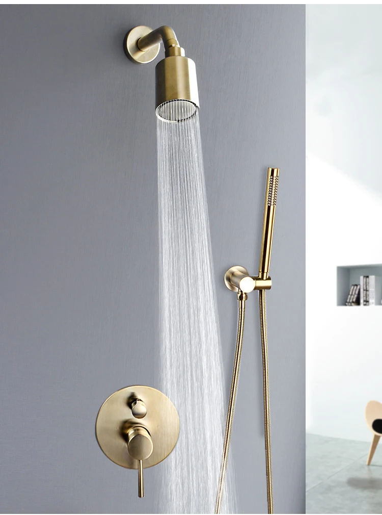 Золотистый душевой набор для ванной комнаты, скрытая настенная Душе...