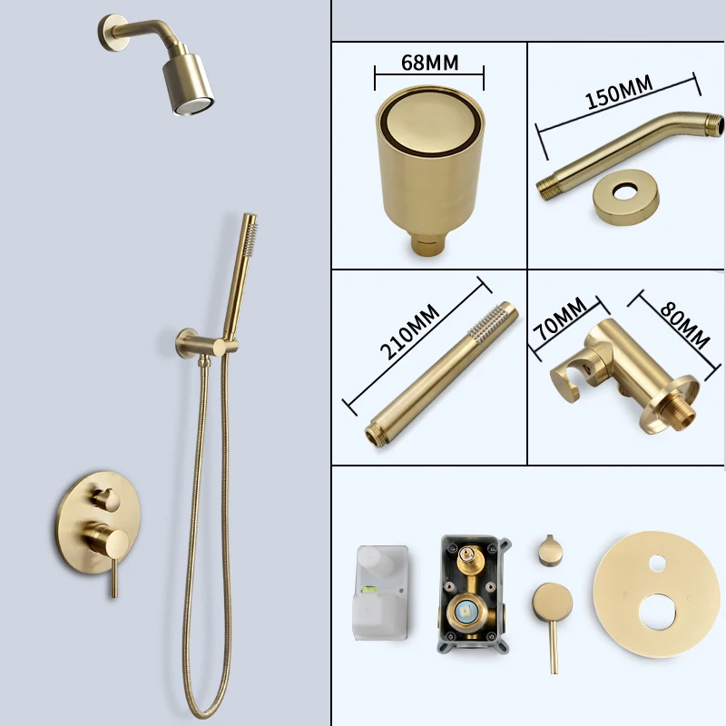 Особенности и характеристики:Смеситель для душа/смеситель для душа/набор для душаИспользование: ванная комната/душевая комната/туалетМатериал: латуньЦвет: матовый золотойУстановка: НастенныйОсобенность: Скрытая установкаВключая все монтажные фитинги