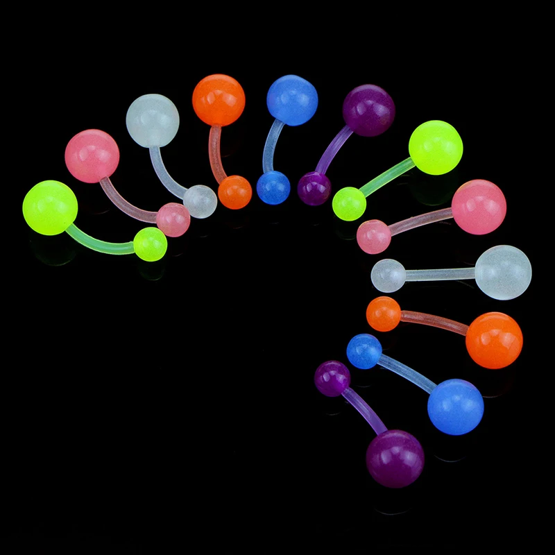 1 комплект, светящееся в темноте кольцо для живота, женские модные Колечки в виде пупка, панк пирсинг, ювелирные изделия для тела, смешанные цвета