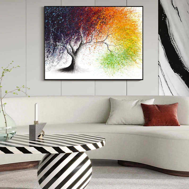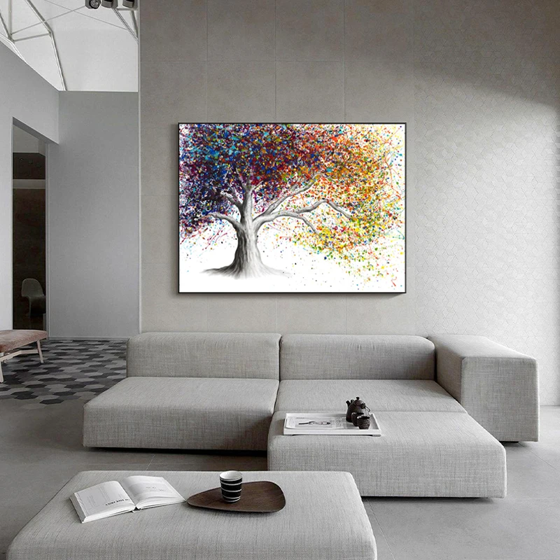 Красочные граффити с деревом, картина маслом на холсте, абстрактные современные плакаты и принты, Настенная картина для гостиной, домашний декор