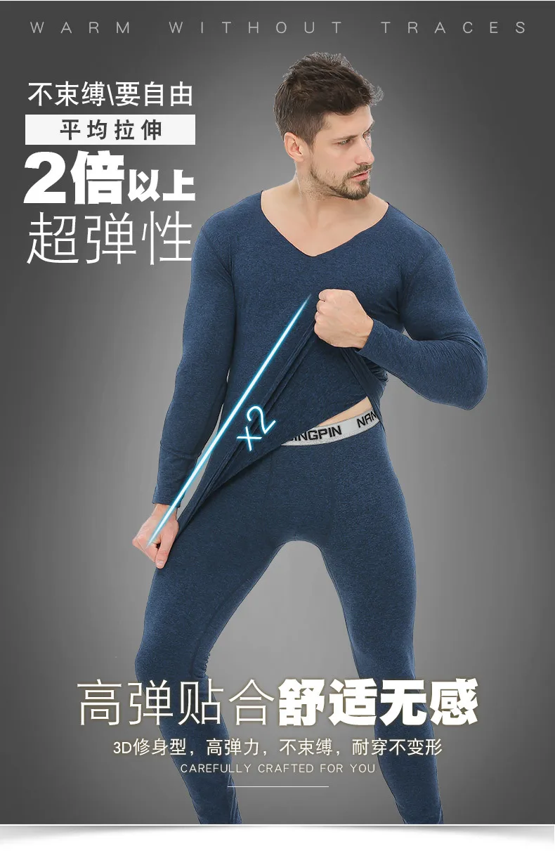 Комплект термобелья для мужчин и женщин, Осень-зима, бесшовное термобелье с V-образным вырезом, размера плюс