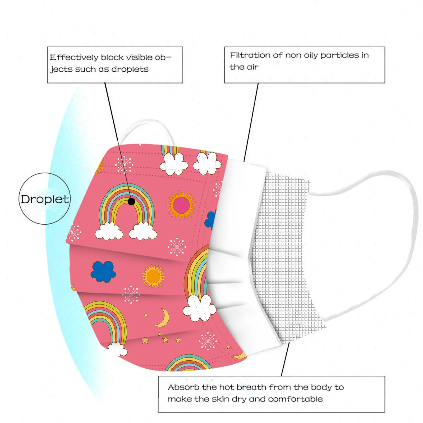 3-слойная одноразовая маска из нетканого материала изготовлена из 3-слойного нетканого материала, это безопасно для здоровья и использования. Дышащий материал и милые узоры, что делает его полезным и модным. Специальная трехслойная Нетканая конструкция обеспечивает некоторую защиту от пыли, выхлопных газов автомобилей, пыльцы и т. д. эластичная петля для ушей, удобна в носке и не давит на уши. Маникюрный салон или любые другие области, где может потребоваться защита
