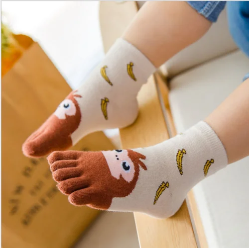 Одежда для малышей, для мальчиков и девочек, зимние хлопковые носки с изображением мультяшных животных пять носок с пальцами чулочно-носочные носки с пальцами