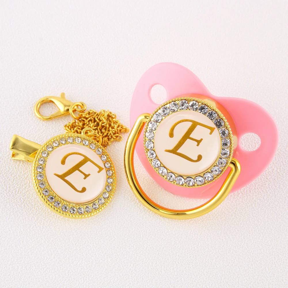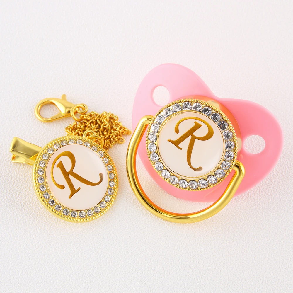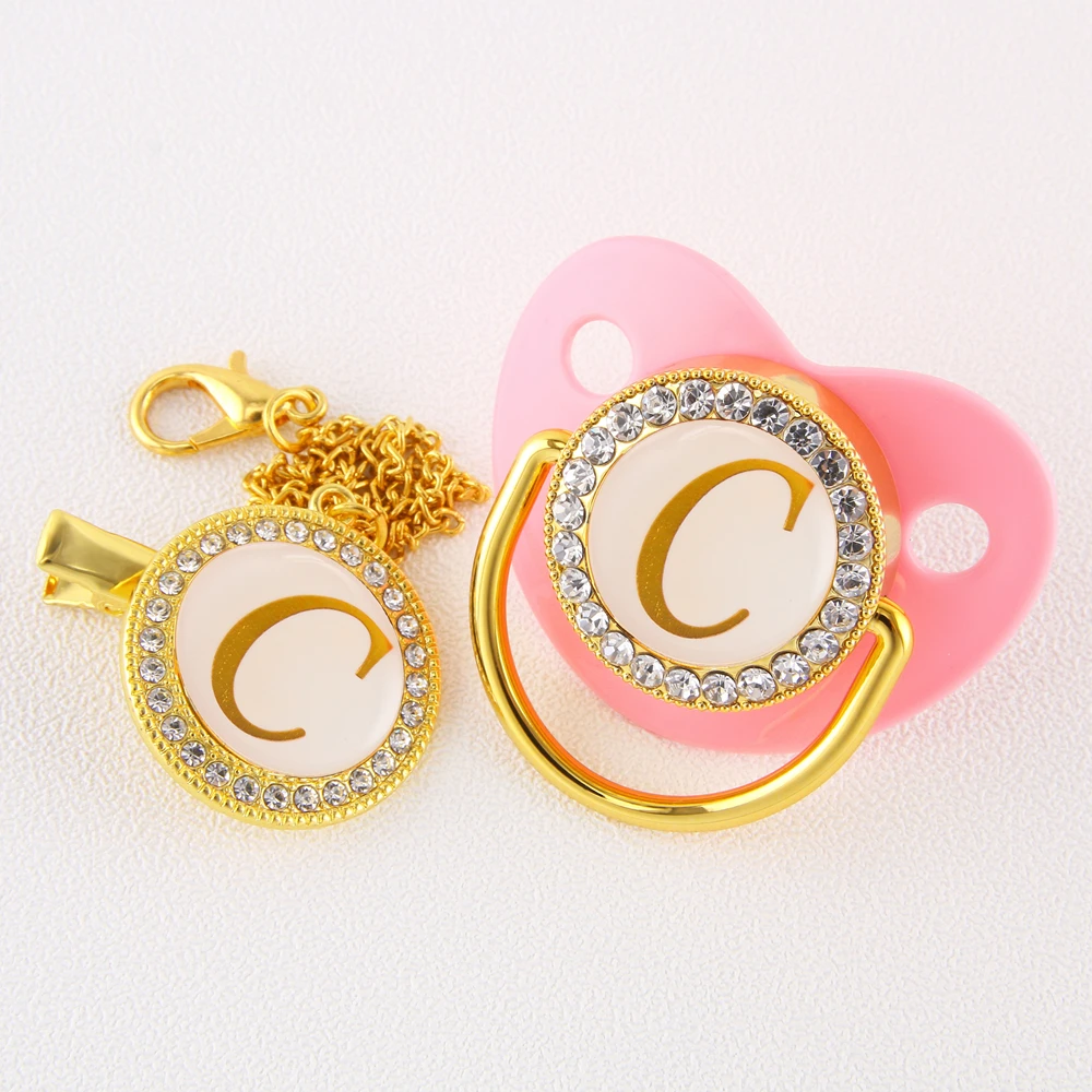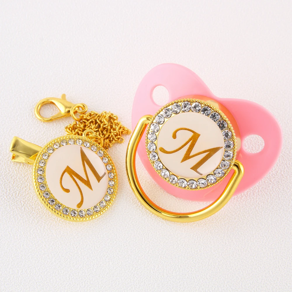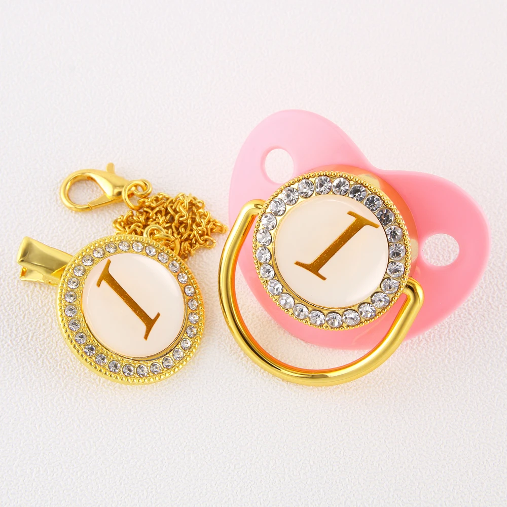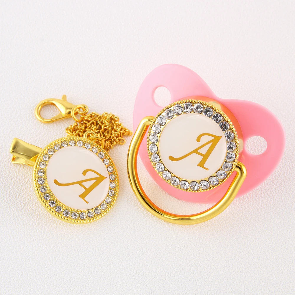 Роскошная розовая Соска-пустышка 0-12 месяцев с буквой A BlingBling, Детская Соска-пустышка с зажимом для новорожденного, детская игрушка для вечеринки в честь рождения ребенка