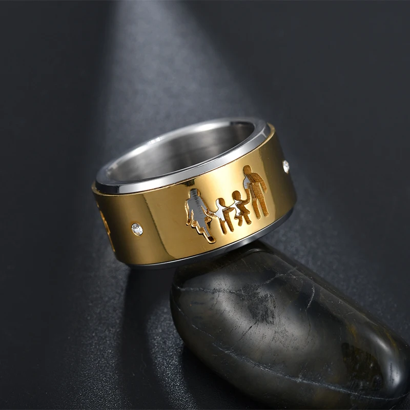 Бриллиант новый золотой кольцо из нержавеющей стали, циркониевое вращающийся кольцо для пап, мам и детей; Модный дизайн для женщин семейное платье для ювелирных изделий