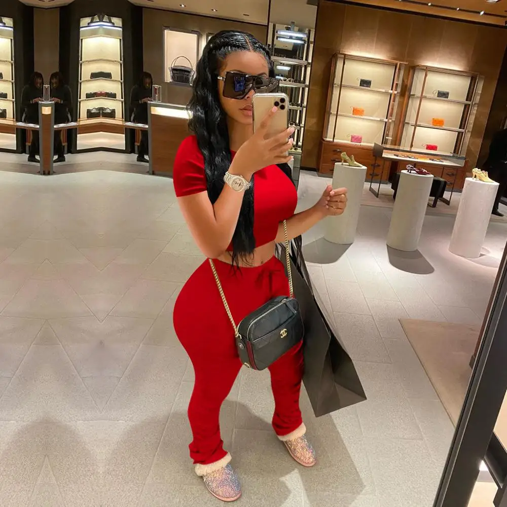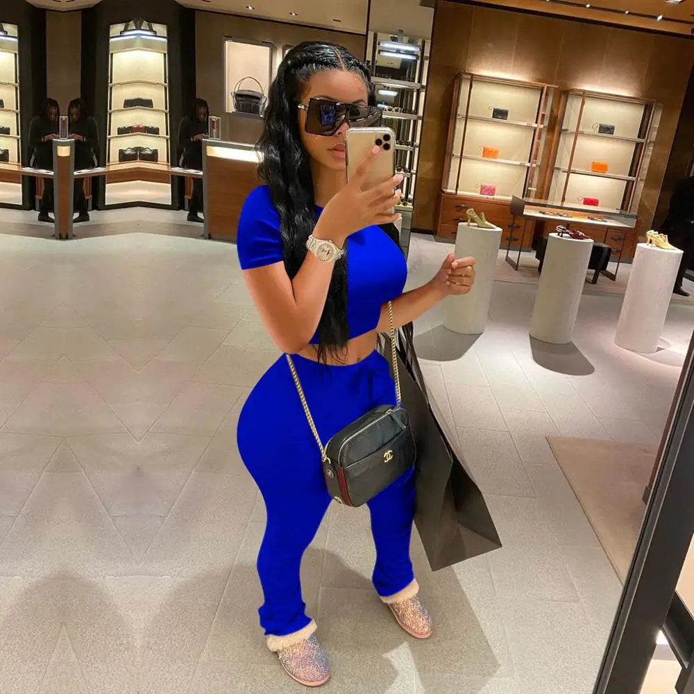 Женский спортивный костюм из двух предметов, короткий топ с коротким рукавом и брюки-клеш