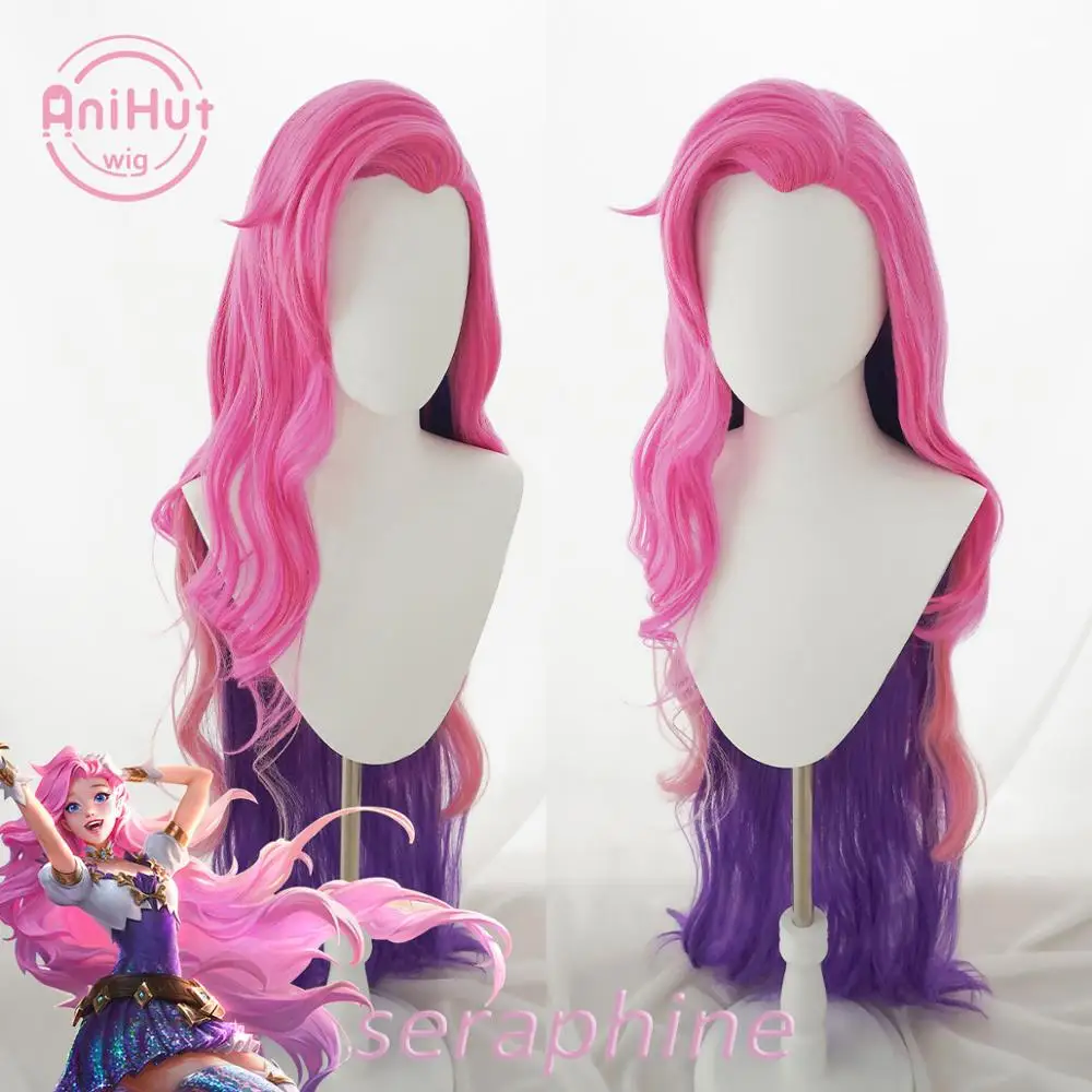 AnihutSeraphine Косплэй парик игры Лига Легенд кДа League of Legends Для женщин Оттенки розового и фиолетового цветов на рост 90 см Seraphine волна Косплэй парик