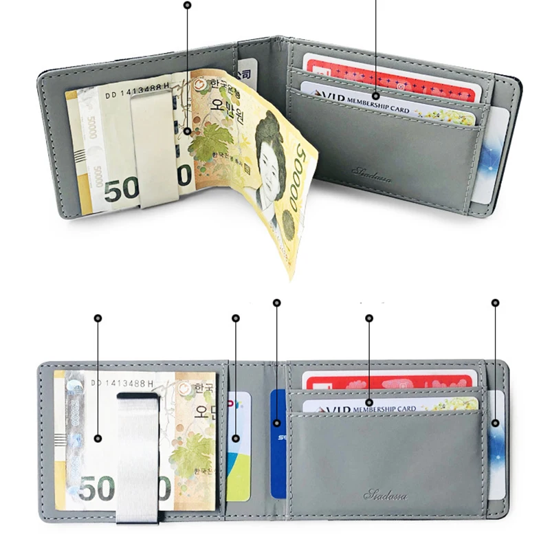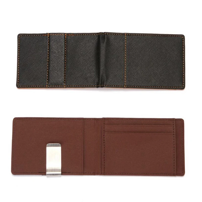 Тонкий кошелек с зажимом для денег передний карман двойной кожаный держатель для карт