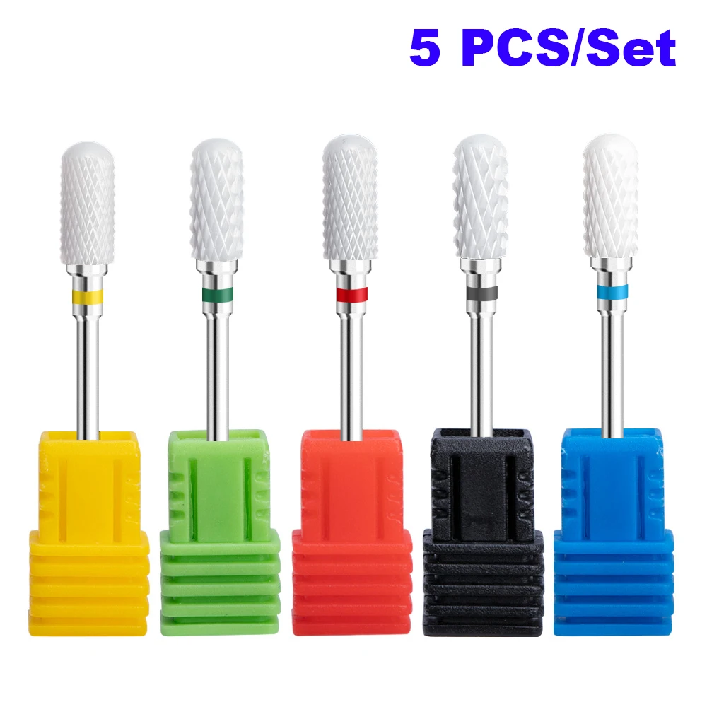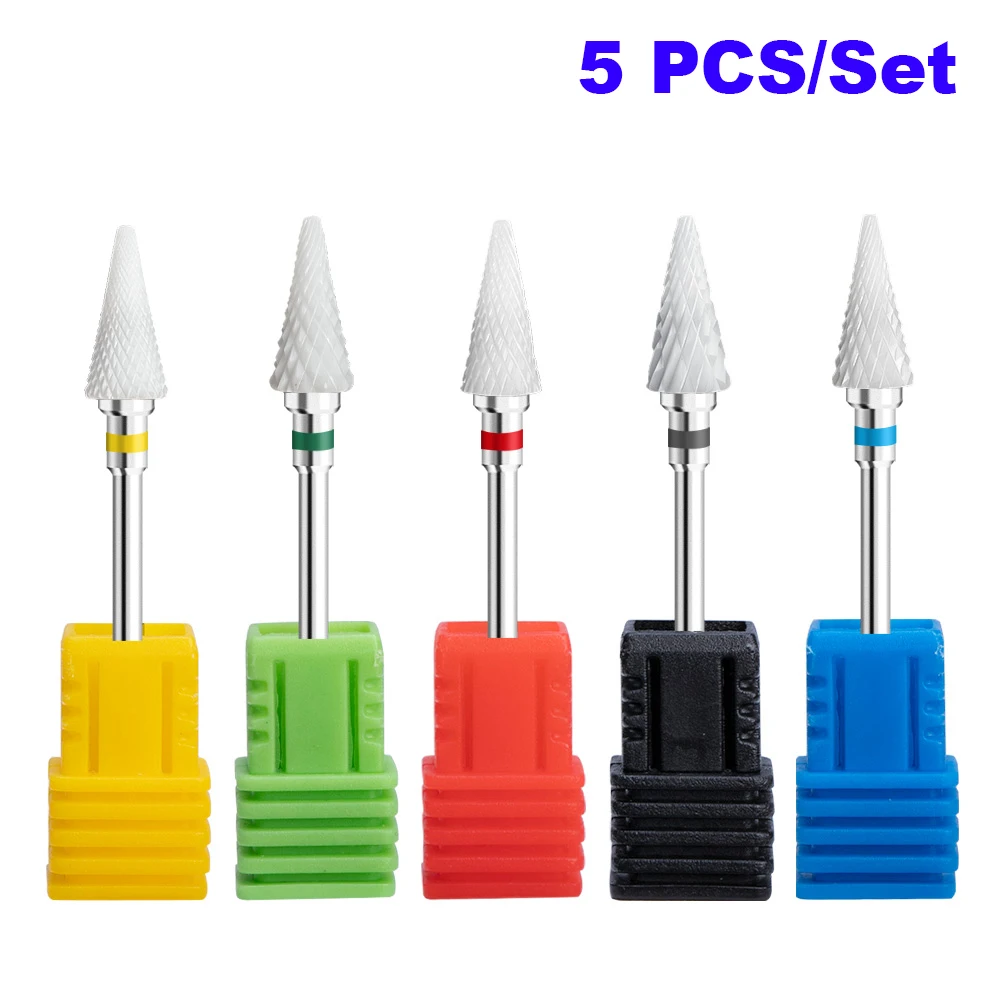 Набор для электрического маникюрного аппарата, пилочка для ногтей, набор из 5 Керамический сверло для ногтей, аксессуары для дизайна ногтей