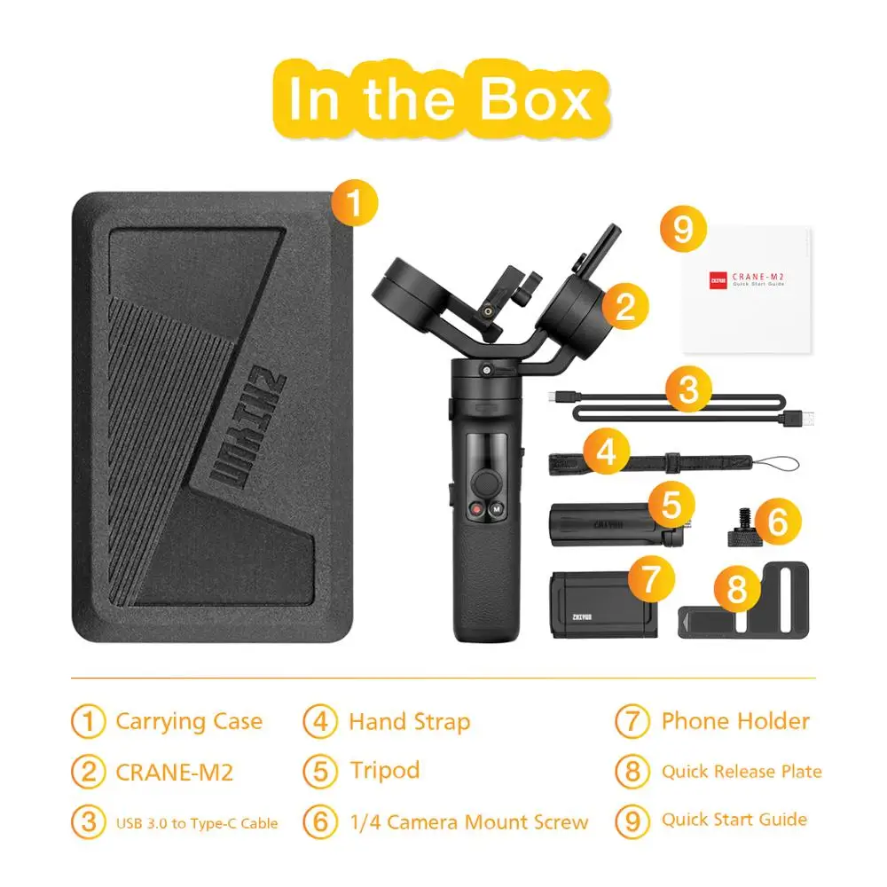 Стабилизатор Zhiyun Crane M2, 3-осевой ручной шарнирный Стабилизатор Для беззеркальных камер, смартфонов, Gopro