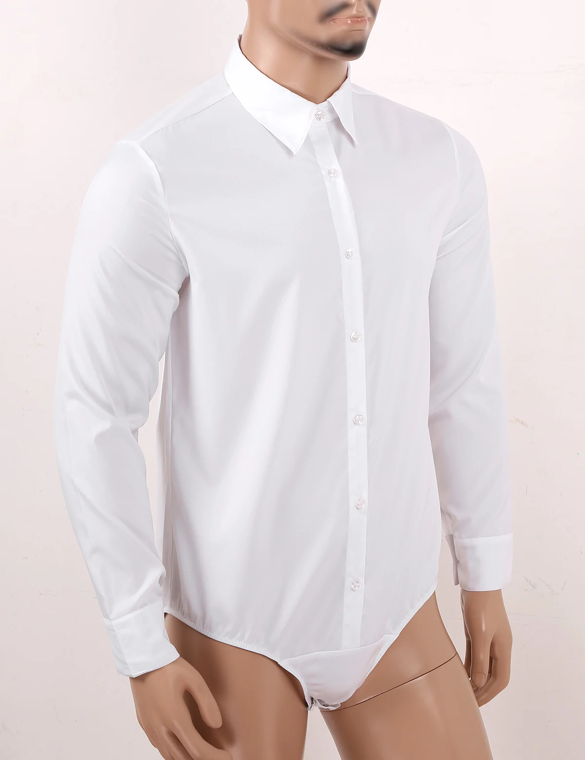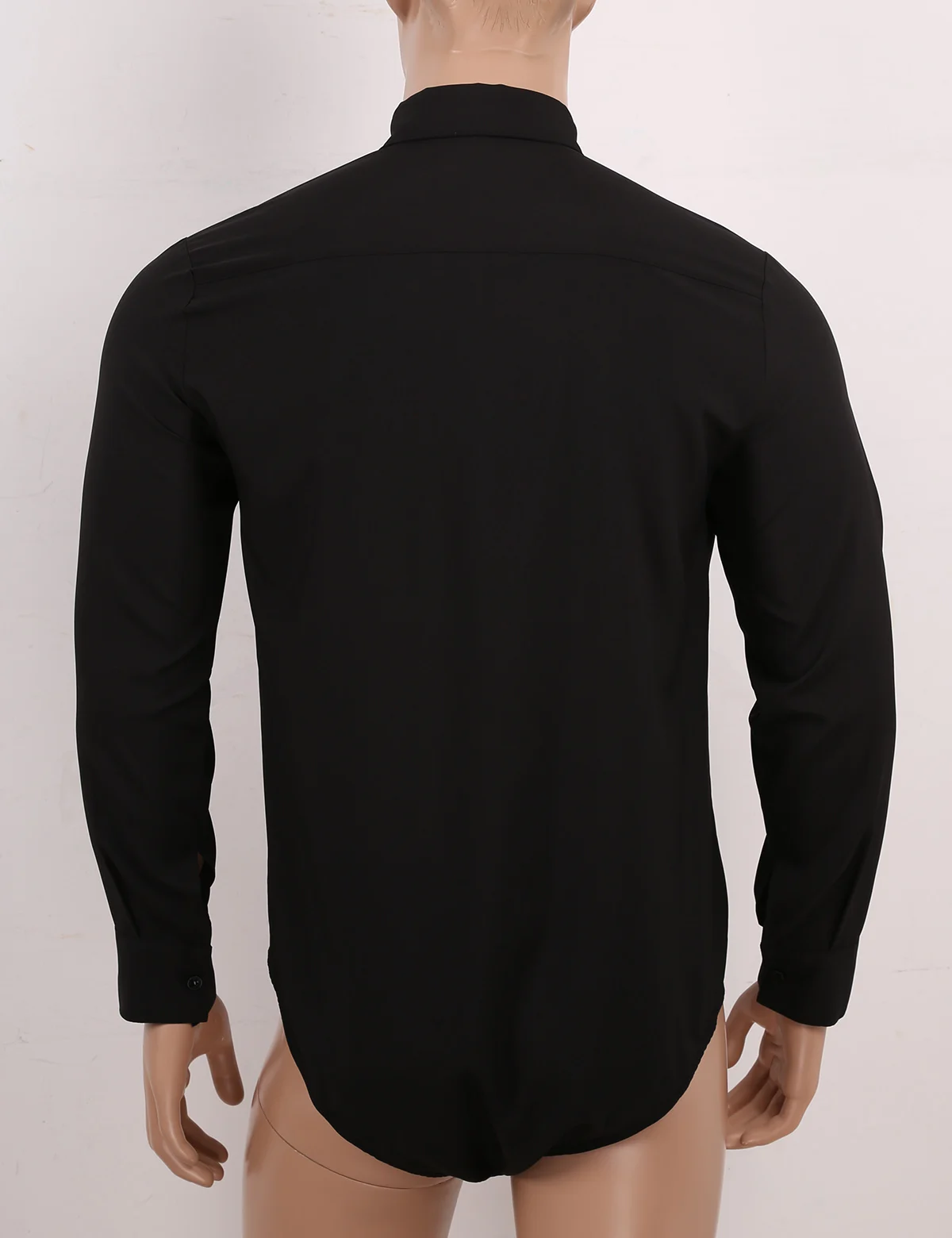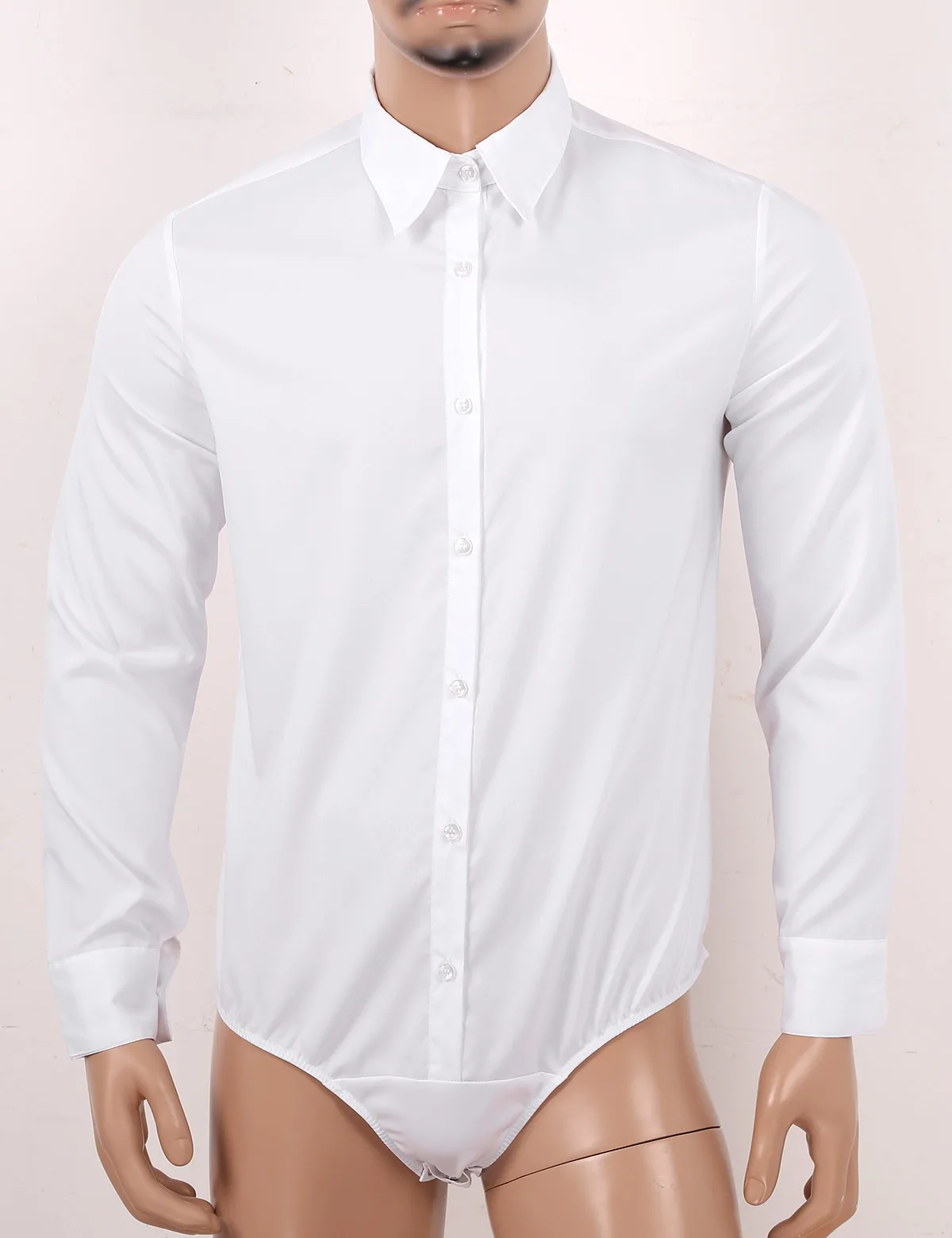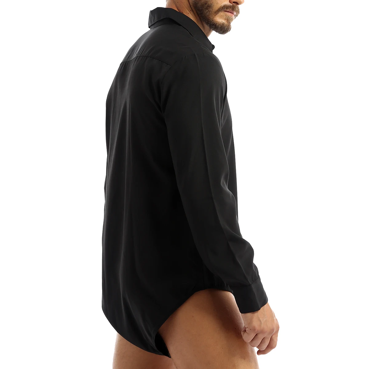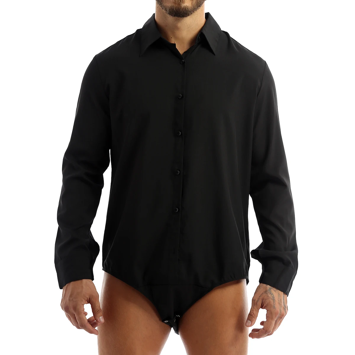 Мужские взрослый комбинезон рубашка Топы Мужской Одна деталь нижнее белье одежда с длинным рукавом на пуговицах с застежкой в промежности мягкие Повседневное комбинезон корсет рубашки для мальчиков