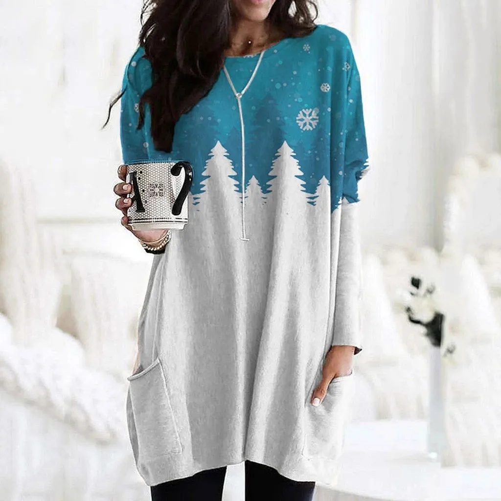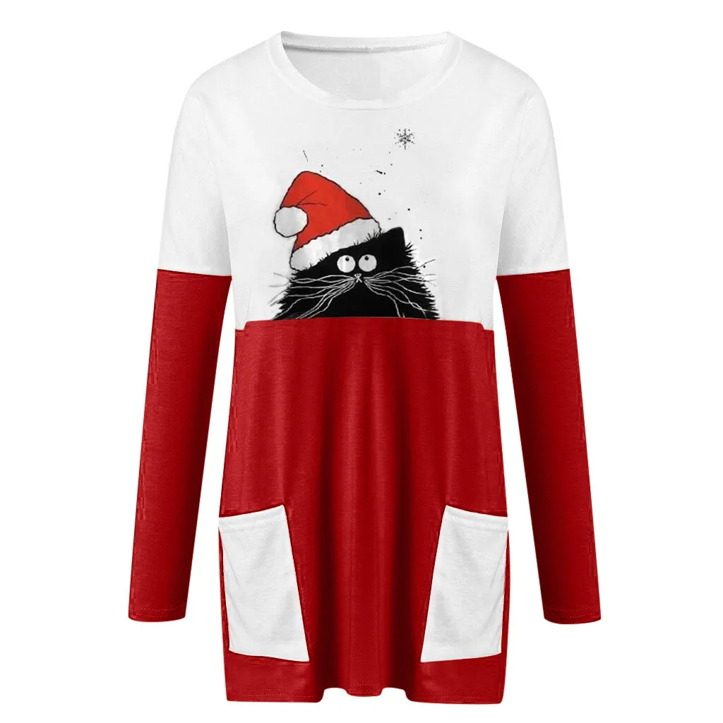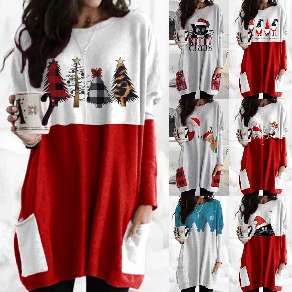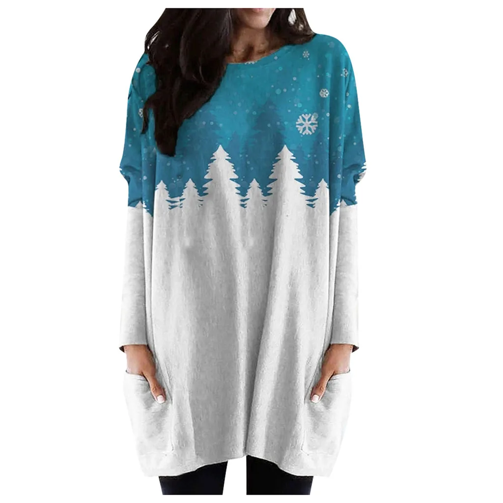 Женская Рождественская Толстовка с длинными рукавами и принтом, Повседневная Блузка