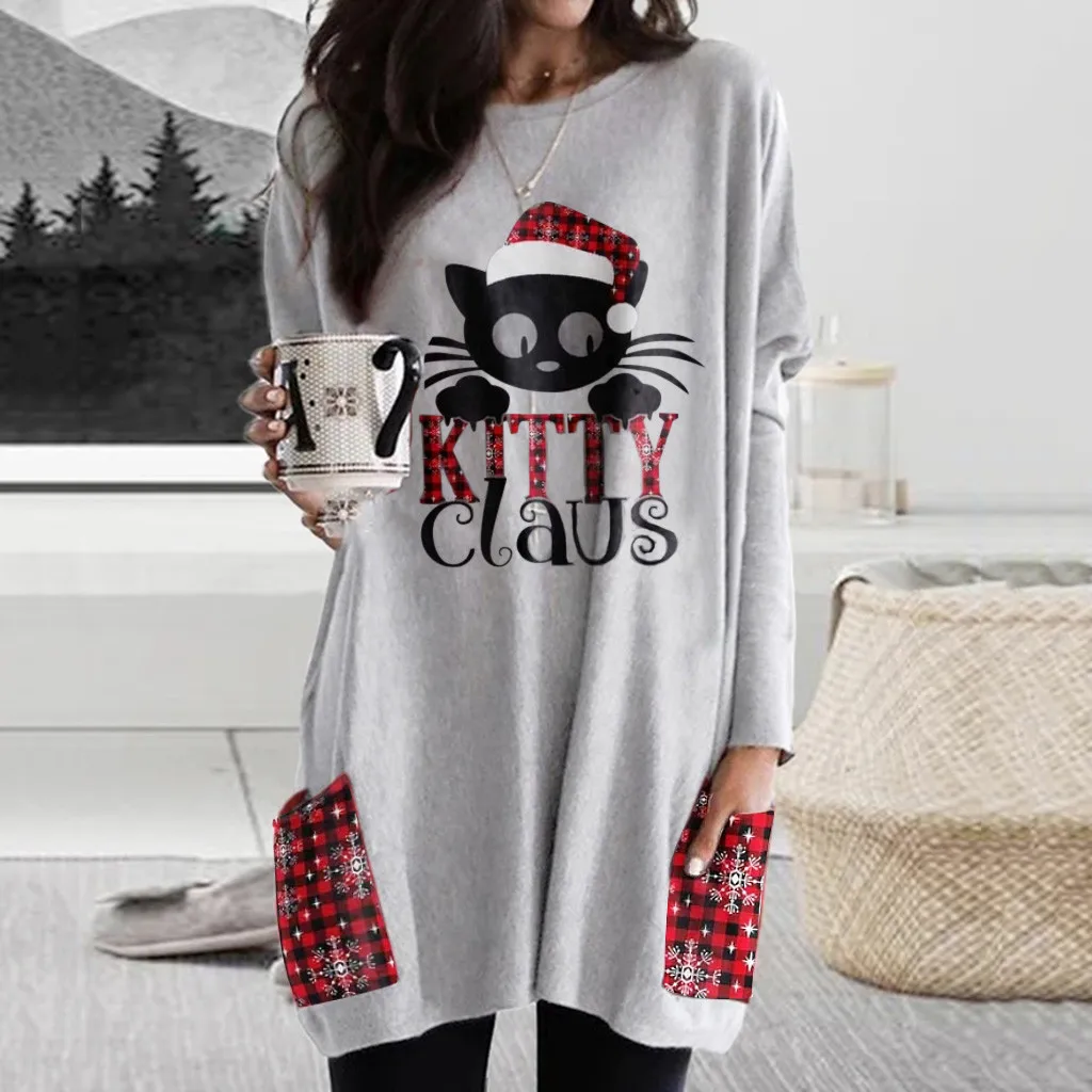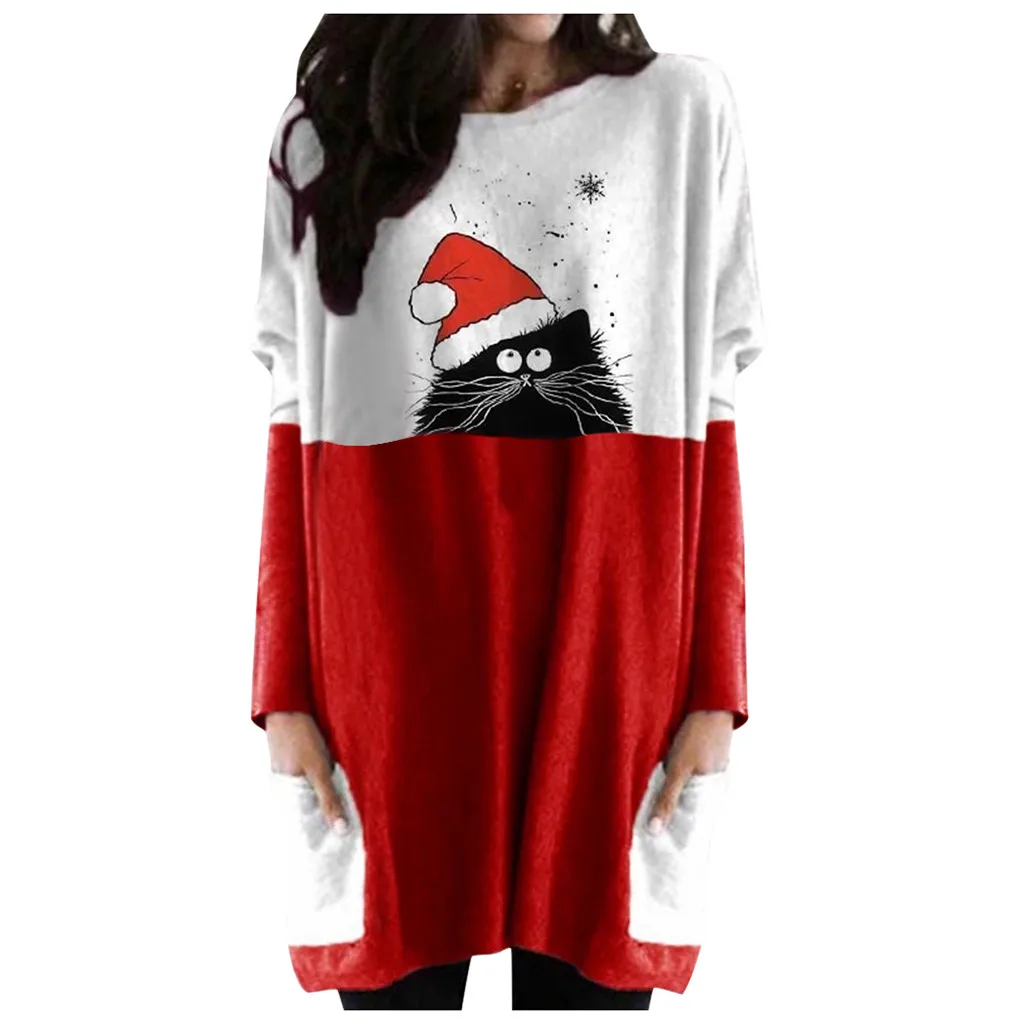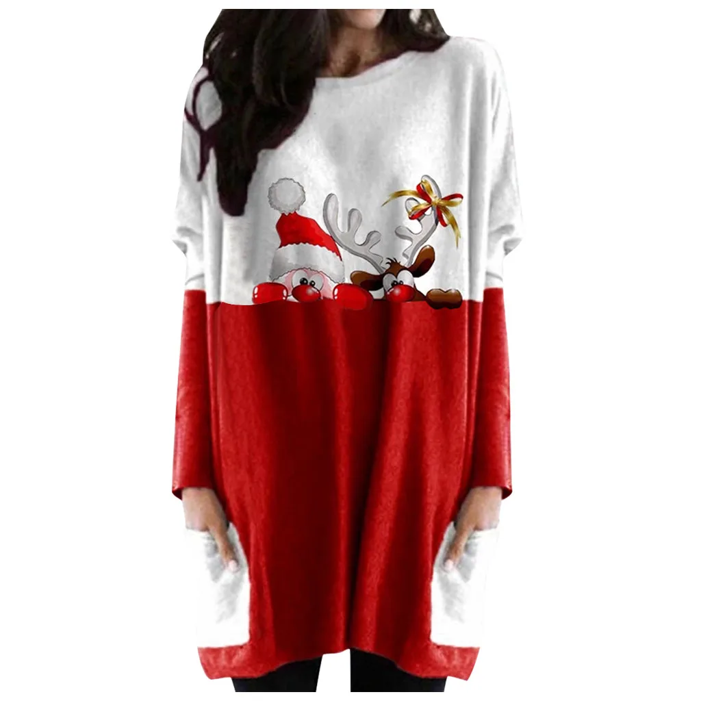 2020 Рождественские свитера с длинными рукавами для женщин с мультяшным рисунком пуловер с карманами Женский Повседневный свитер зимний свитер для дома и улицы
