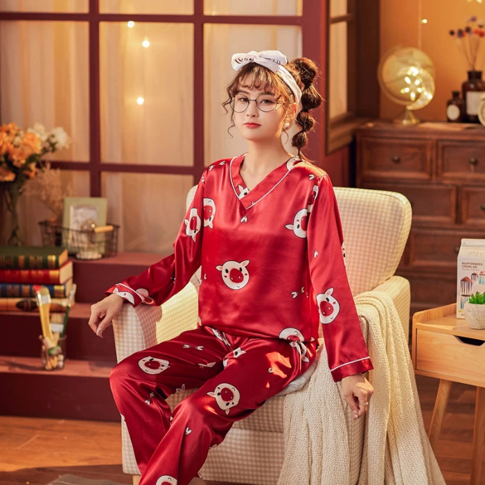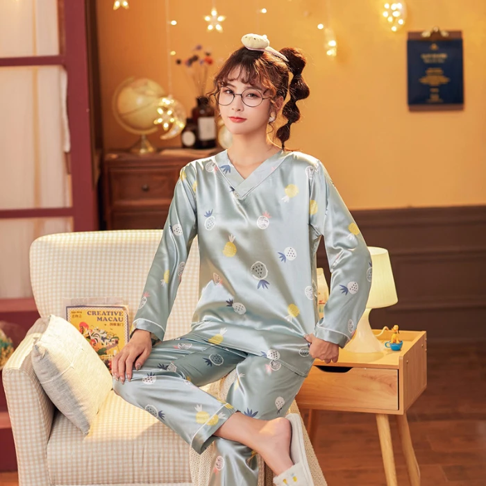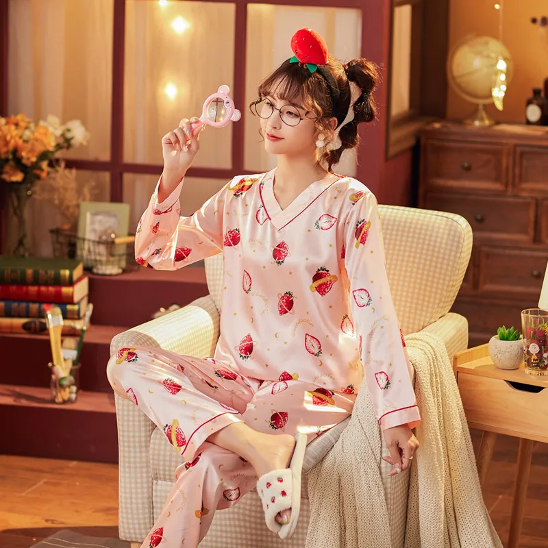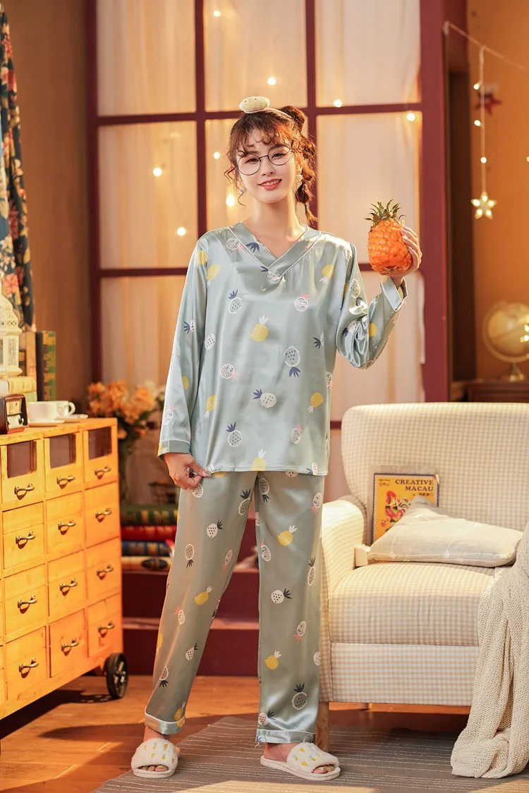 Пижамы для 2020, женская обувь, женская обувь, осенние женские шелковые блузки с длинным рукавом свободного кроя с напечатанными изображениями рождественской для женщин для сна; Детская пижама с принтом длинные штаны домашняя одежда