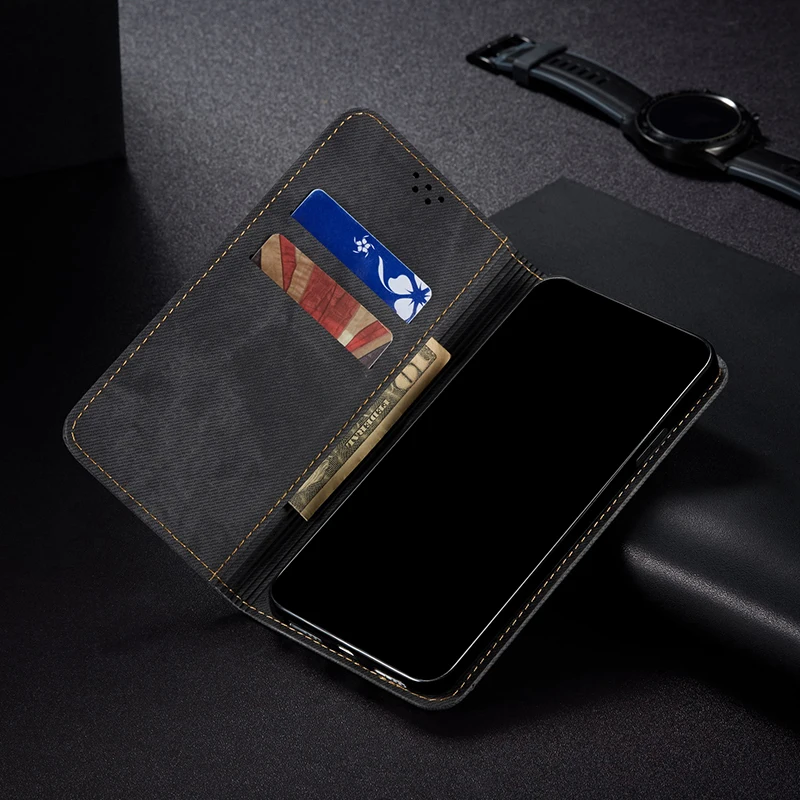 Роскошный кожаный чехол-книжка с узором из джинсовой ткани для Xiao...