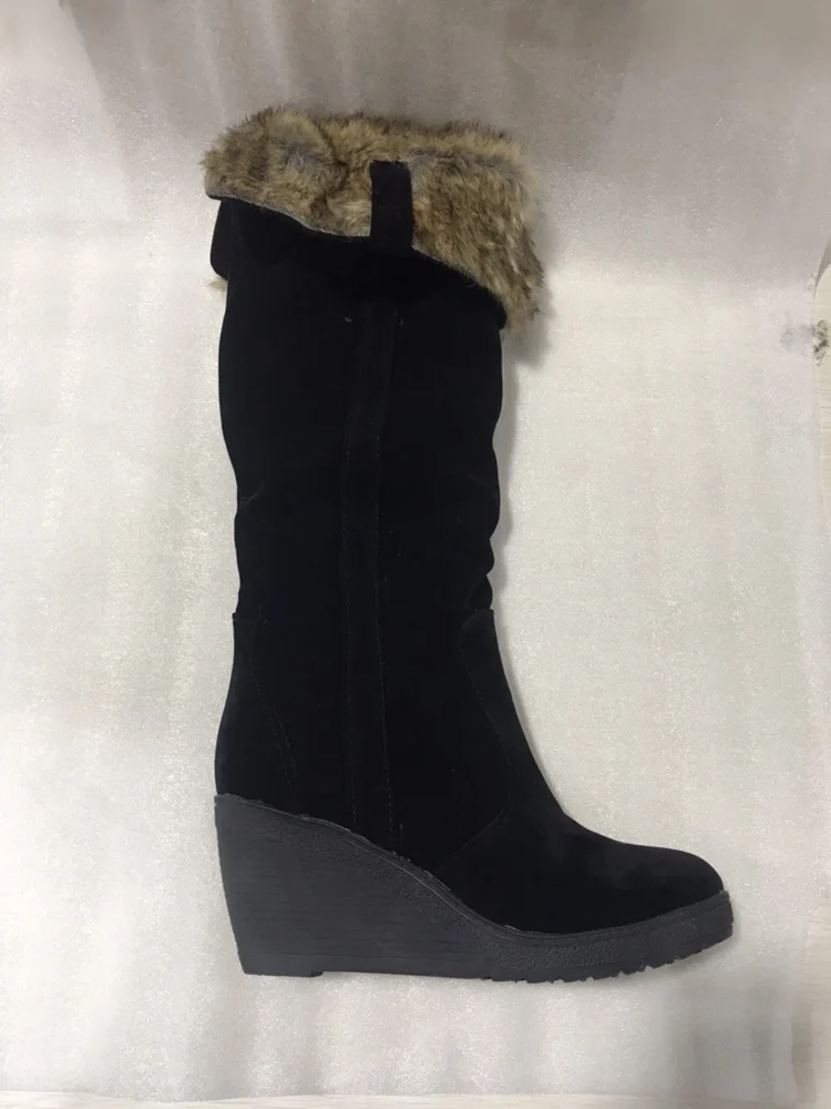 Новинка; Высокие сапоги на танкетке; Женские теплые сапоги; Цвет Че...